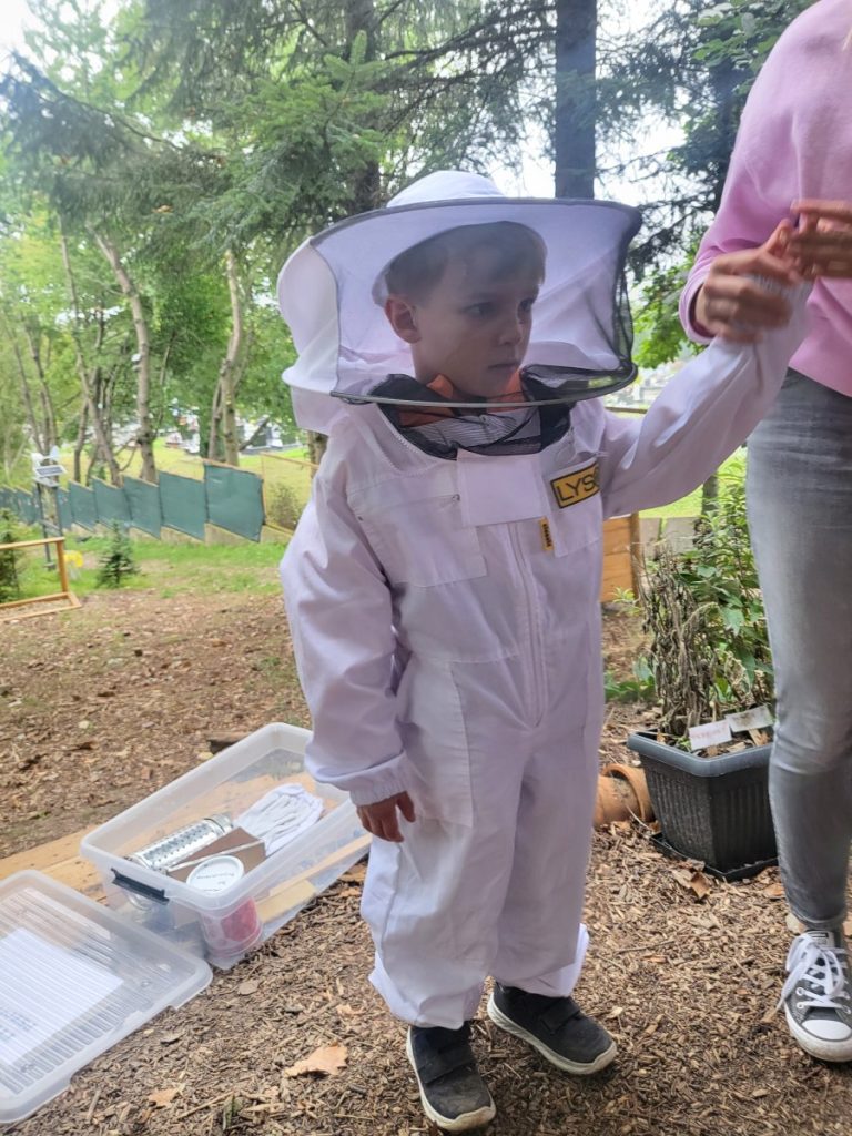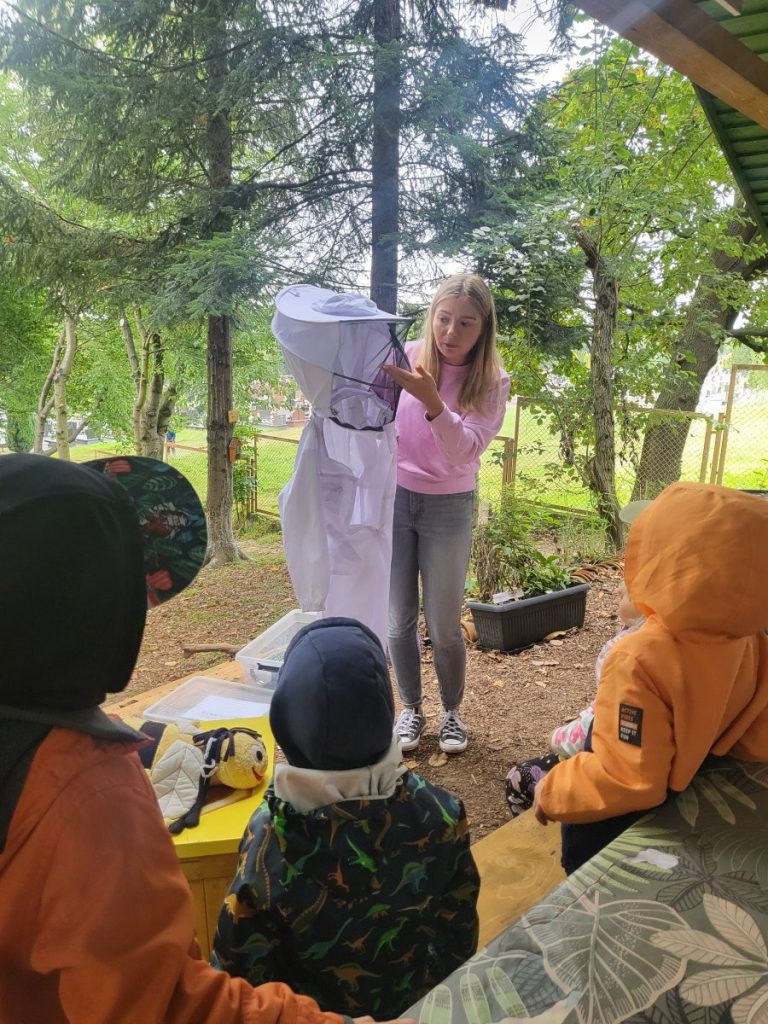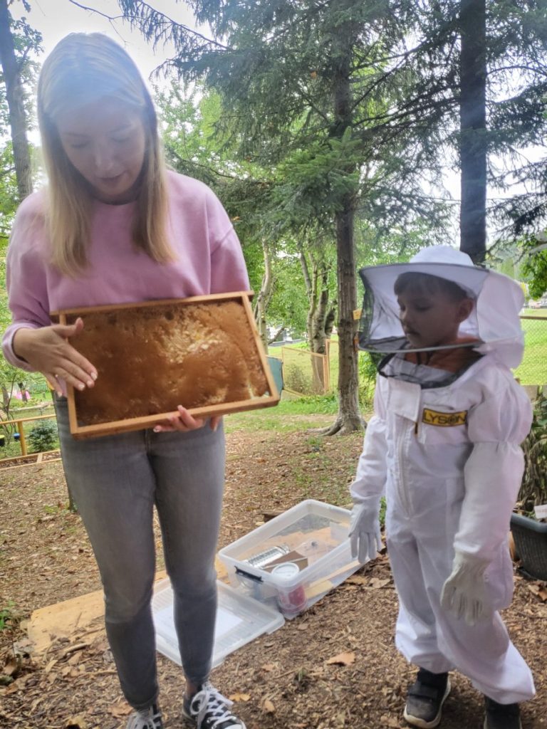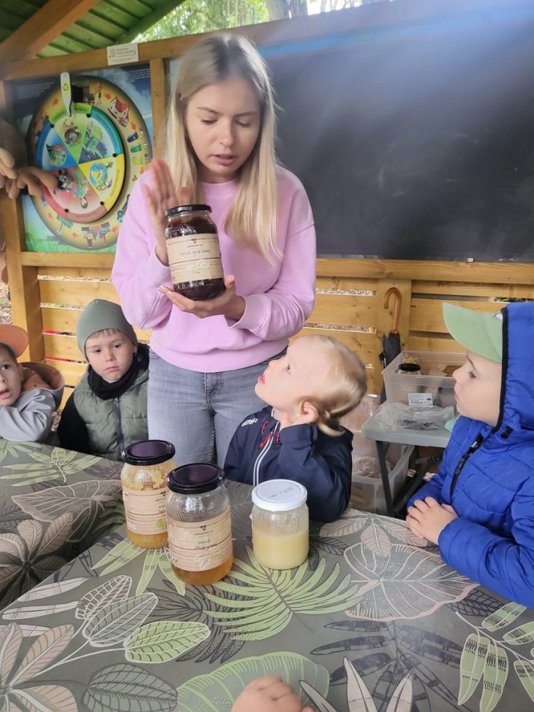Dzieci dowiedziały się m.in., że każda pszczoła ma swoją rolę w ulu, co produkują pszczoły, degustowały różne rodzaje miodu oraz poznały, jak wygląda praca pszczelarza.