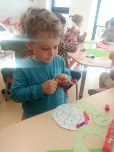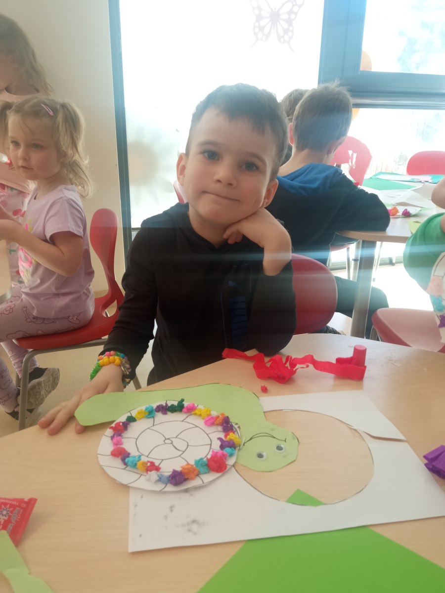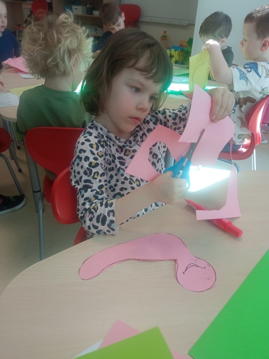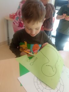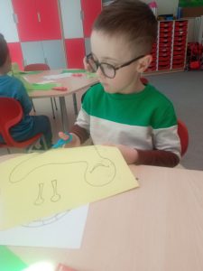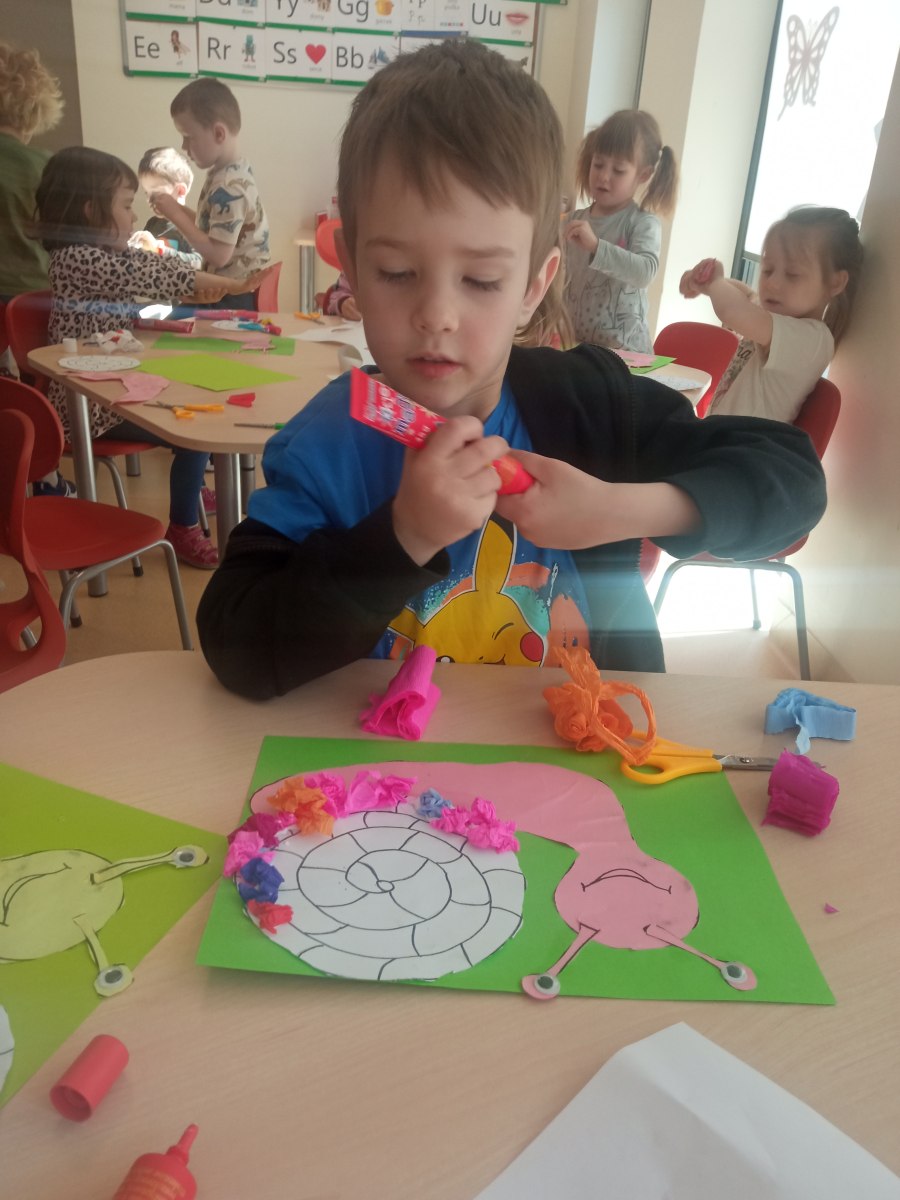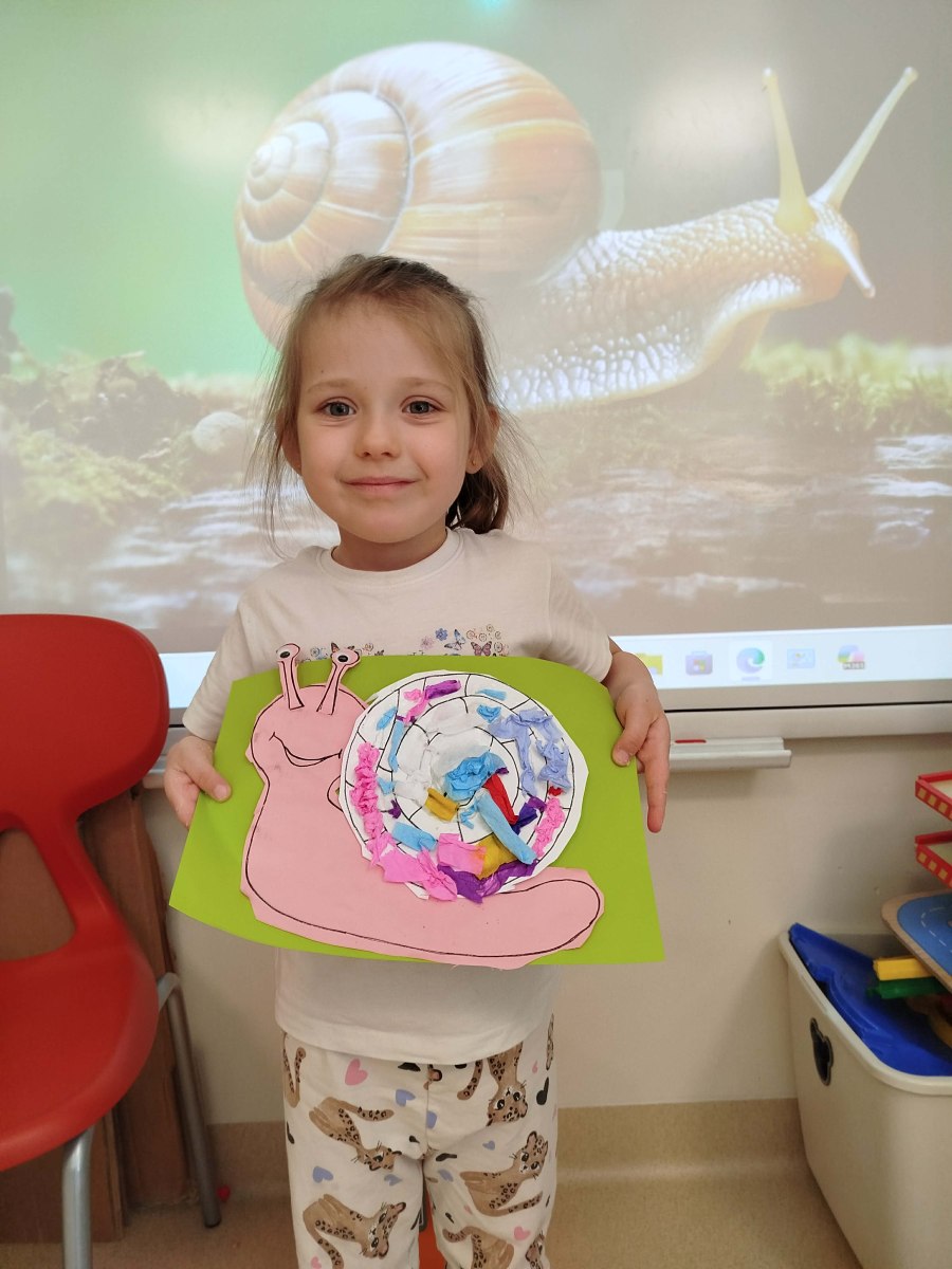 • Zabawy paluszkowe: Podczas śpiewania ćwiczyliśmy sprawność dłoni, naśladując powolne ruchy ślimaków i chowanie się do skorupki.