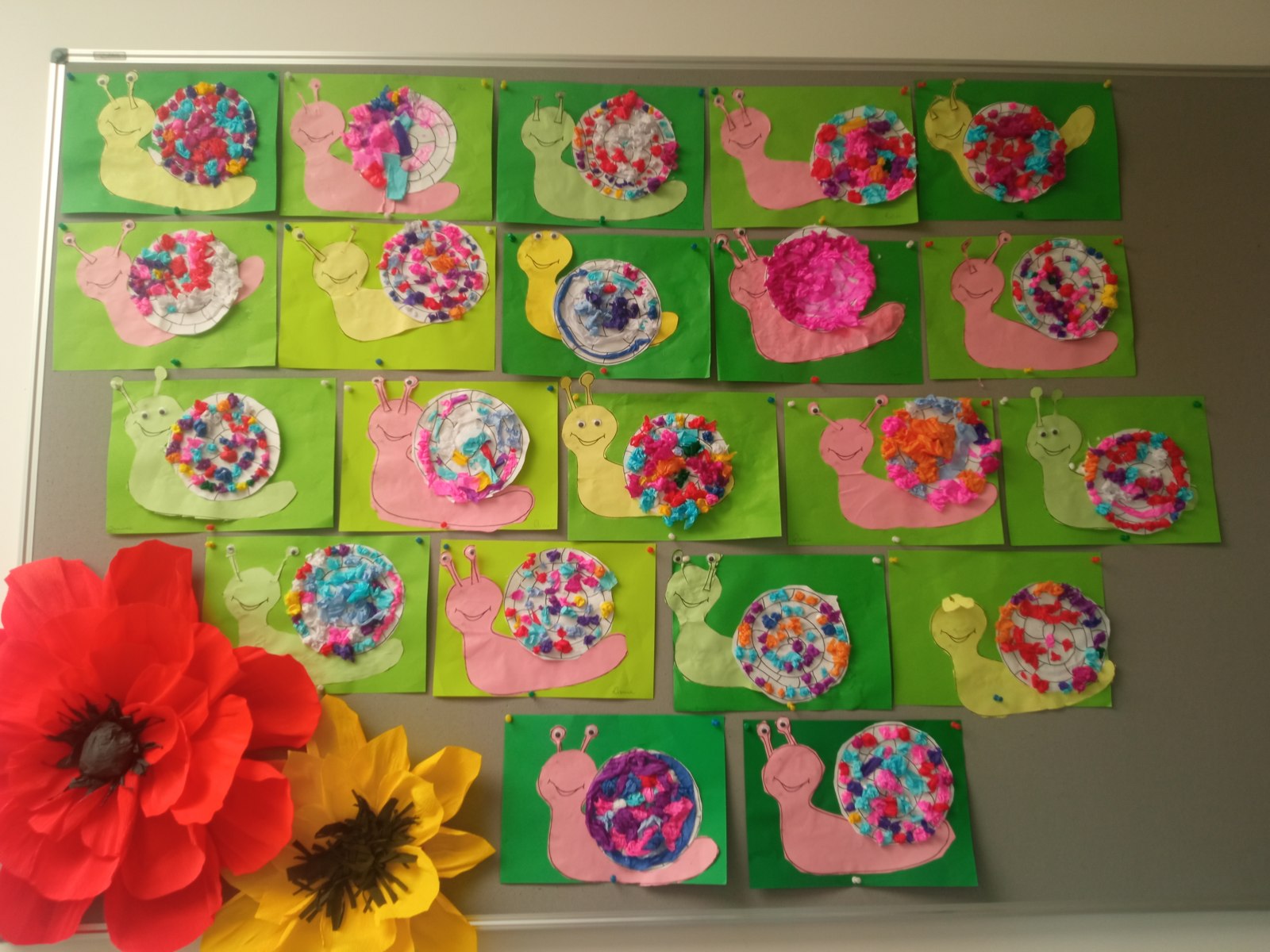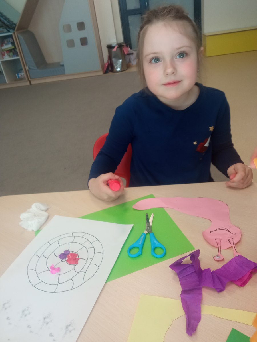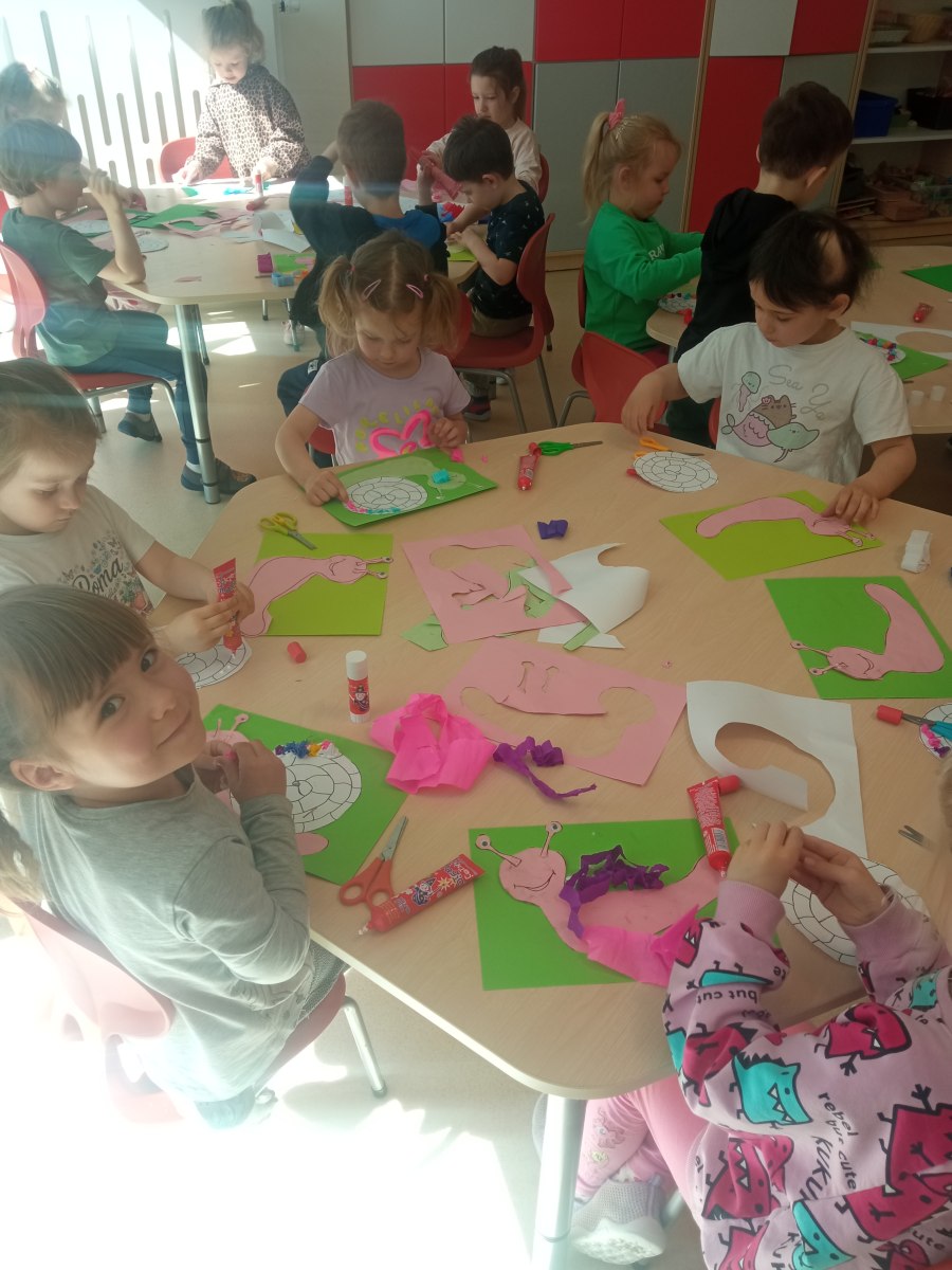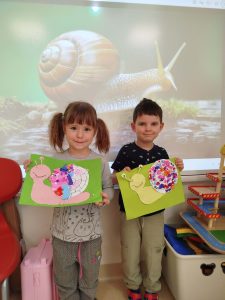 Na koniec dzieci zamieniły się w małych artystów. Wykonały przepiękne, kolorowe ślimaki: