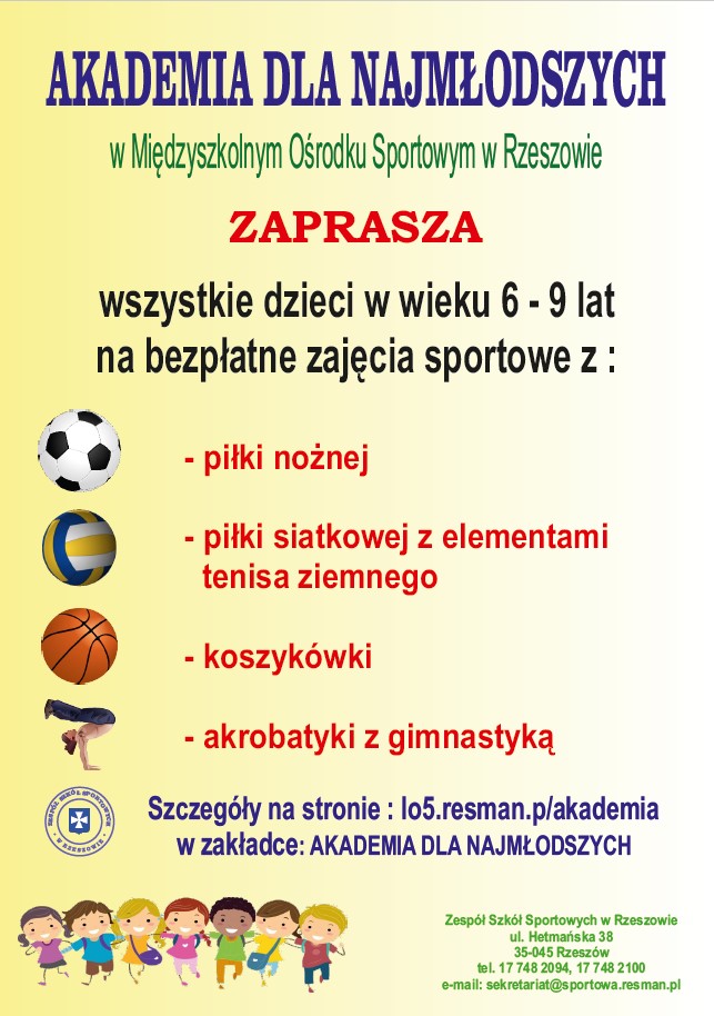 zaprasza wszystkie dzieci w wieku 6 – 9 lat na bezpłatne zajęcia sportowe z: