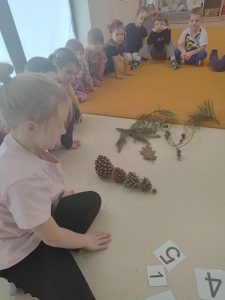 W dniu 29 września „Jeżyki” obchodziły ,,Dzień Drzewa”. Podczas zajęć wysłuchały baśni „O niewdzięcznych drzewach”E.Stadmuller .Dowiedziały się, że Drzewa dzielimy na liściaste i iglaste,nazywały i oglądały drzewa ,opisywały je w różnych porach roku . Liczyły szyszki w zakresie 5 ,układały od największej do najmniejszej ,wykonywały różne ćwiczenia z wykorzystaniem liści. Dzieci dowiedziały się co dają nam drzewa , jakie mają znaczenie w przyrodzie i co dają ludziom.Na koniec zajęć wypiły lipową herbatkę i wykonały szyszkowego stworka.