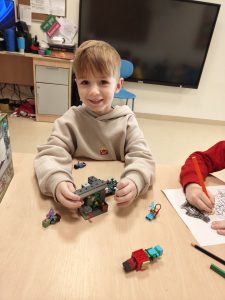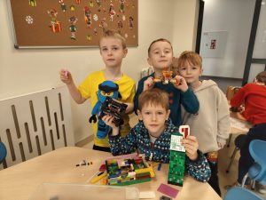 Międzynarodowy Dzień LEGO, przypadający 28 stycznia, to jedno z najbardziej wyczekiwanych świąt w kalendarzu przedszkolnym i szkolnym. Klocki to nie tylko zabawka – to genialne narzędzie edukacyjne, które rozwija motorykę małą, wyobraźnię przestrzenną i umiejętność logicznego myślenia. W tym dniu grupa ,,Sówek” poznała historię powstania klocków LEGO oraz różne ciekawostki. Były też zabawy kreatywne i konstrukcyjne takie jak: