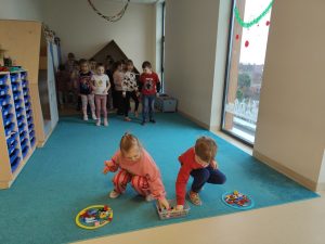 - ,,Zgadnij, co dalej?” – zapamiętywanie kolejności kolorów w szeregu i odtwarzanie go z pamięci,