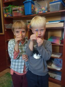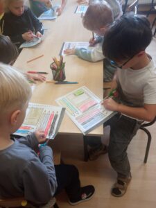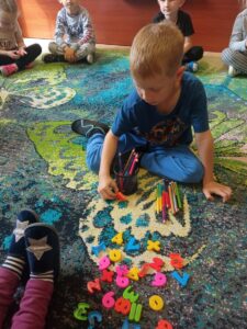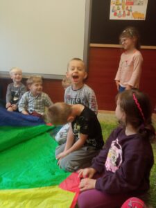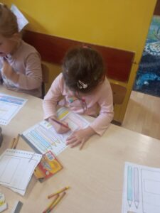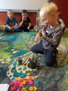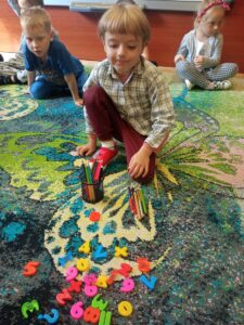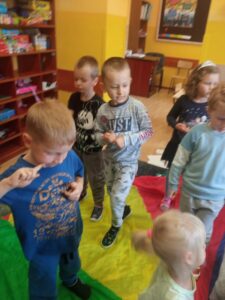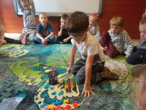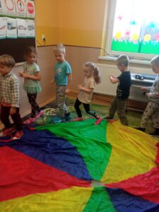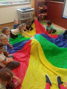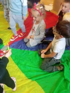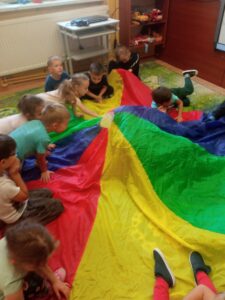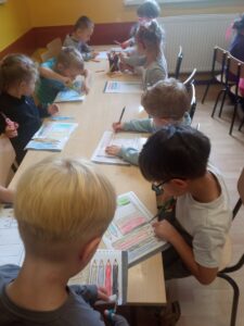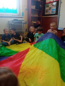 21 września w grupie IV świętowaliśmy święto kredki i przy okazji przypominaliśmy sobie wszystkie kolory i cyfry po angielsku. Dzieci bawiły się w wesołe zabawy z chustą animacyjną i wykonały swoje pudełko z kredkami.