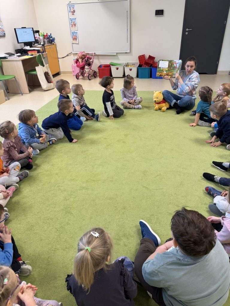 Kolejny raz nasze Biedronki miały ogromną przyjemność gościć panią z biblioteki 📚. Tym razem spotkanie odbyło się z okazji Dnia Kubusia Puchatka, a jego bohaterem był oczywiście uwielbiany przez dzieci miś o bardzo małym rozumku i wielkim sercu.