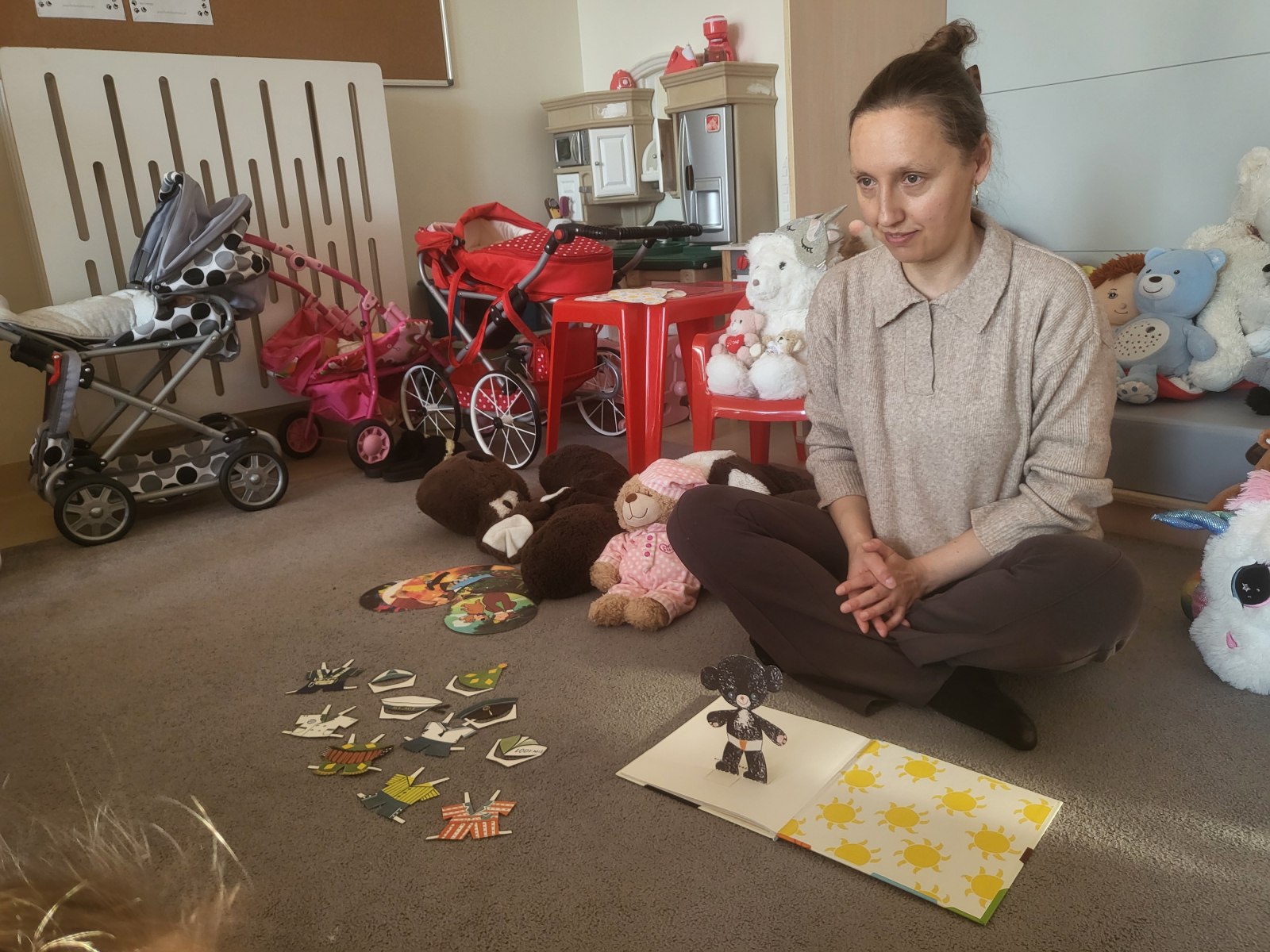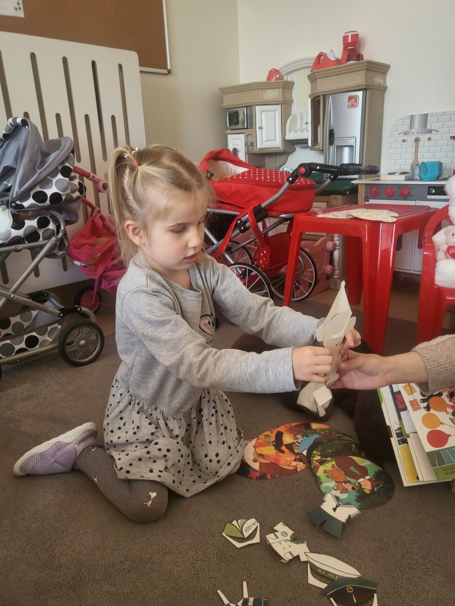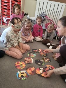 Bibliotekarka przeczytała dzieciom bajkę pt. „Ubieram misia”. Była to niezwykła książeczka, która umożliwiła dzieciom własnoręczne przebieranie misia w różne ubrania. Dzieci rozwiązywały zagadki dotyczące bajek, gdzie głównym bohaterem jest miś m.in. Kubuś Puchatek, Gumisie, miś Paddington, Niedźwiedź i Masza.