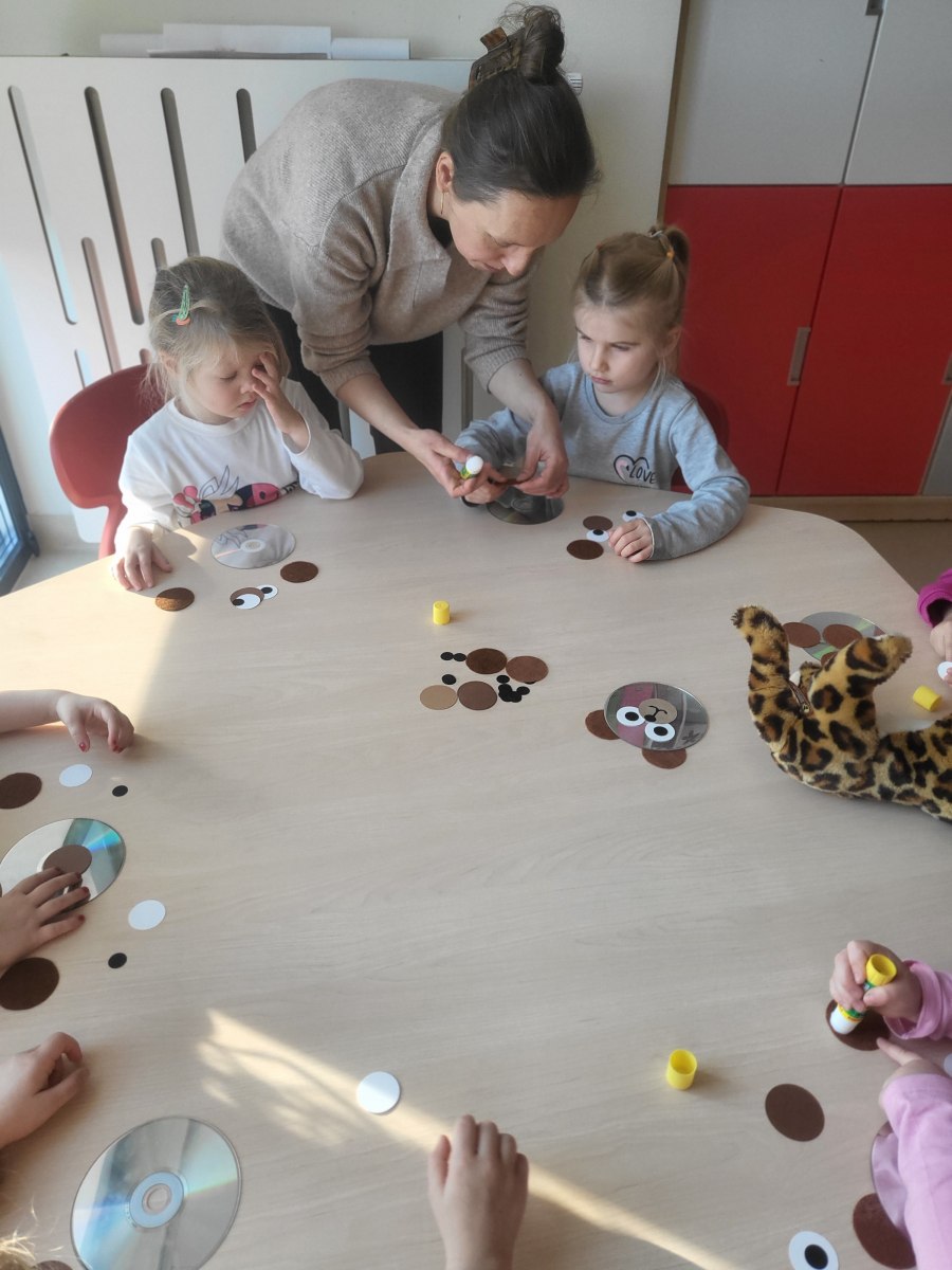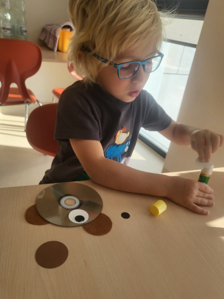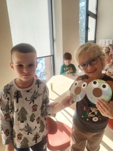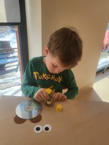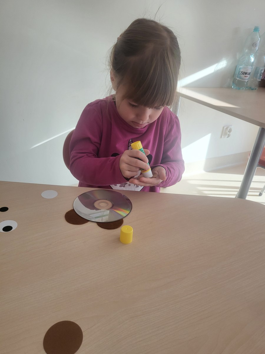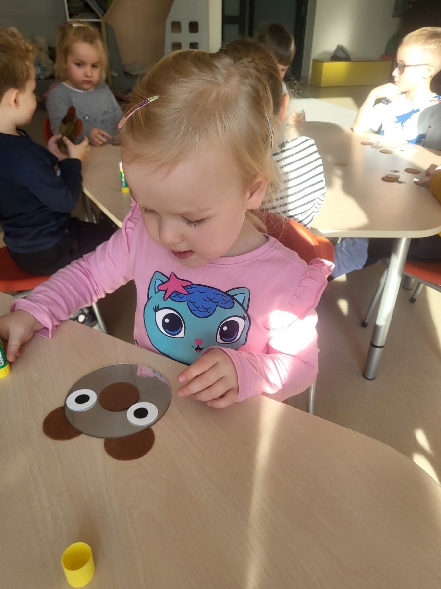 Przedszkolaki z grupy III wykonały również pracę plastyczną – głowę misia z płyty i doklejanych elementów.