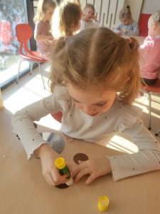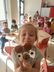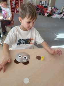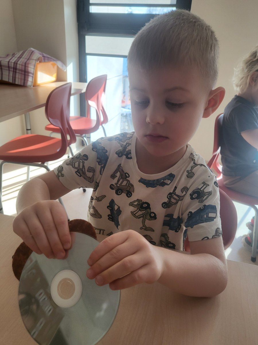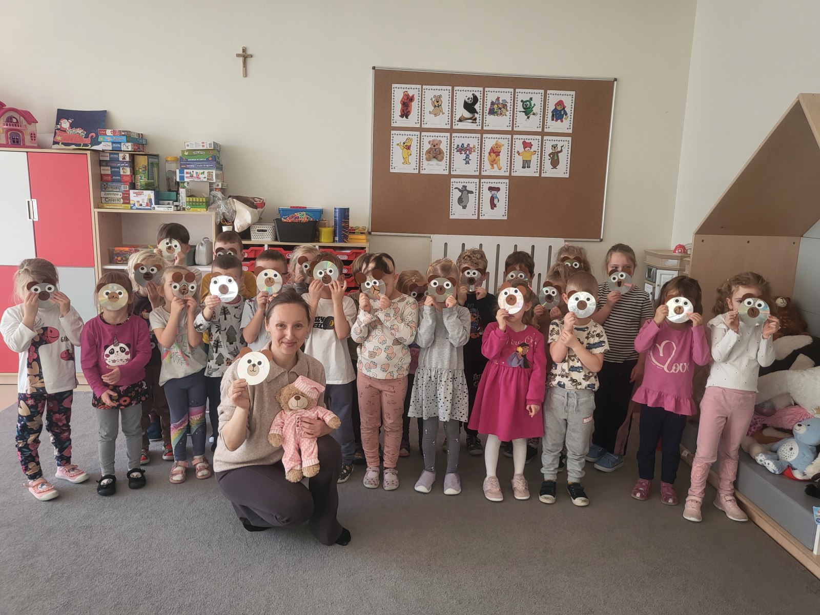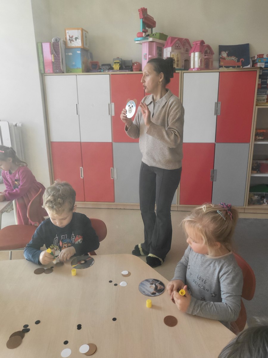 Przedszkolaki z grupy III wykonały również pracę plastyczną – głowę misia z płyty i doklejanych elementów.
