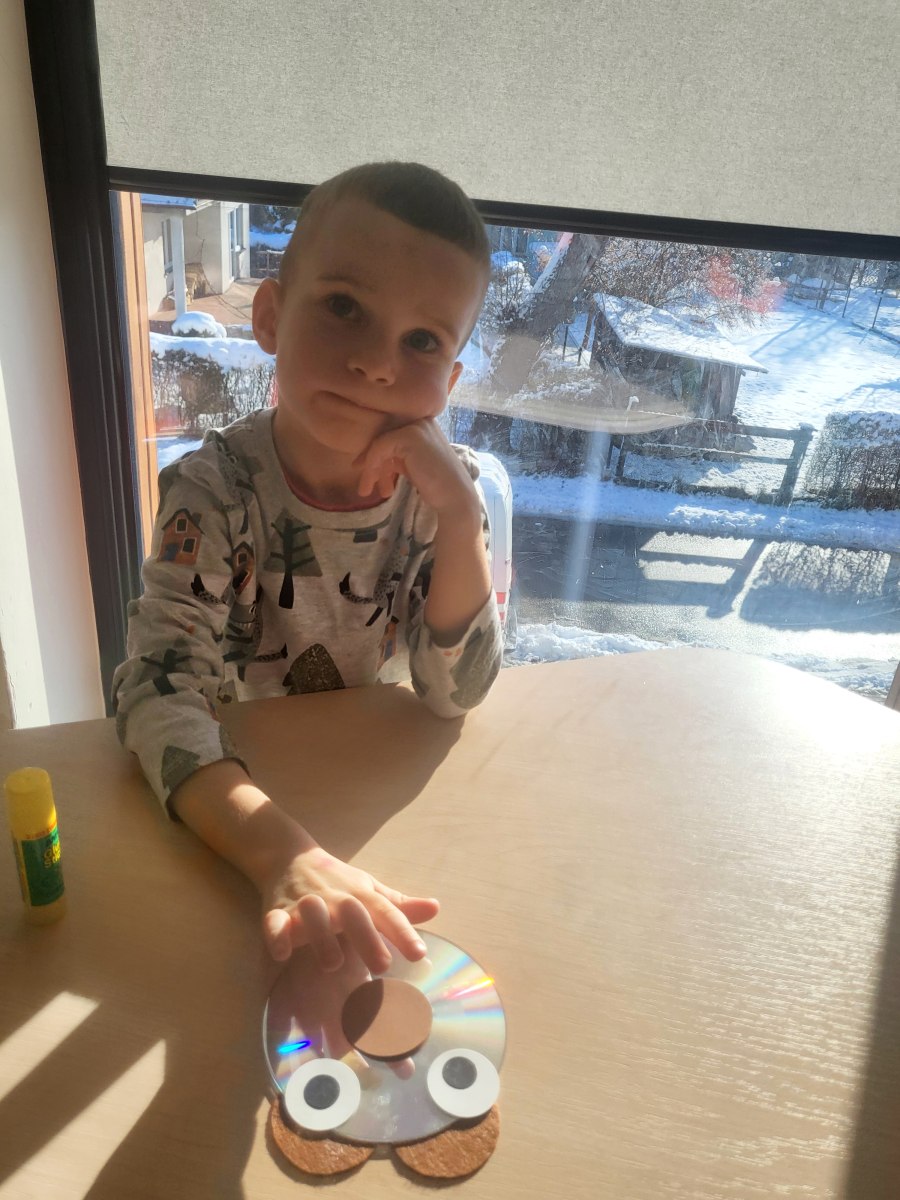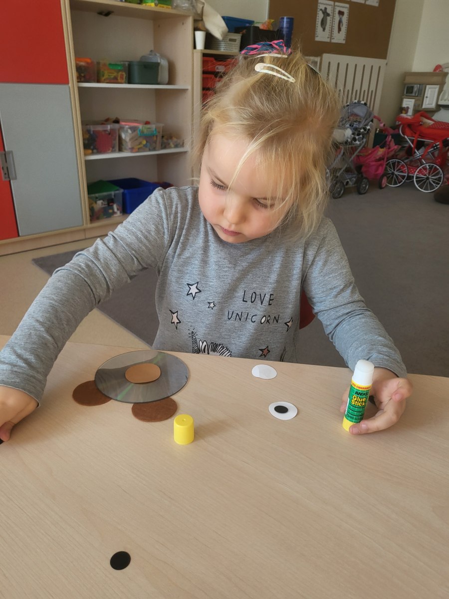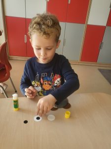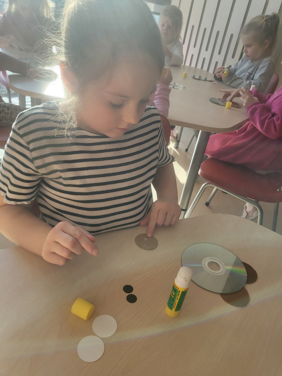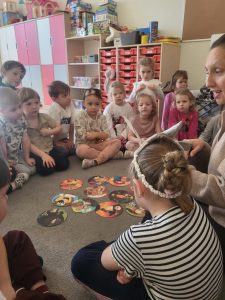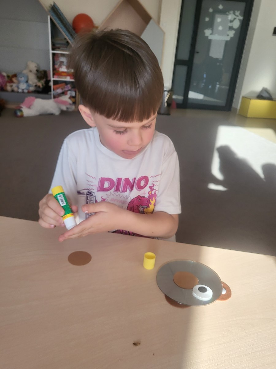 Przedszkolaki z grupy III wykonały również pracę plastyczną – głowę misia z płyty i doklejanych elementów.