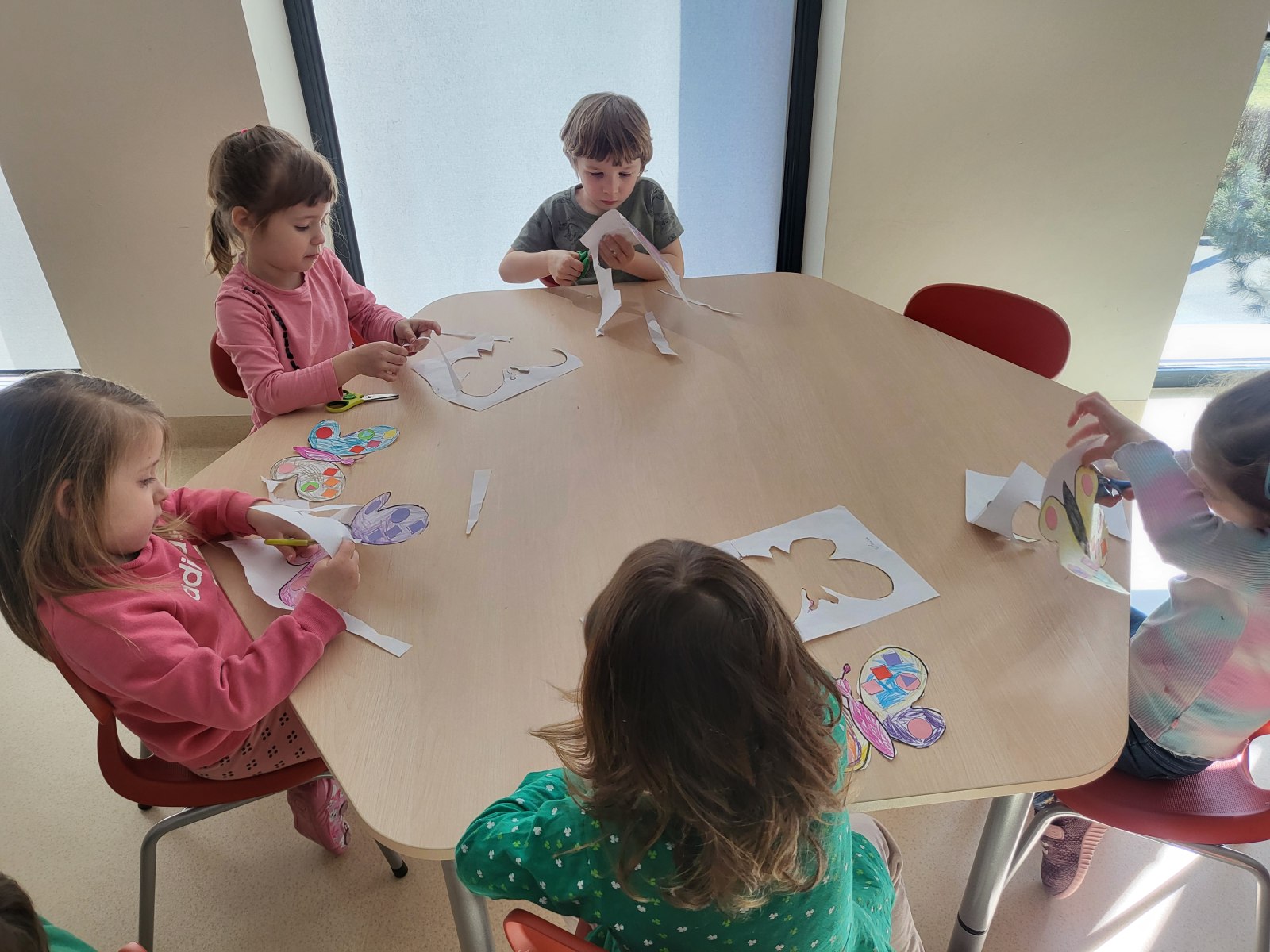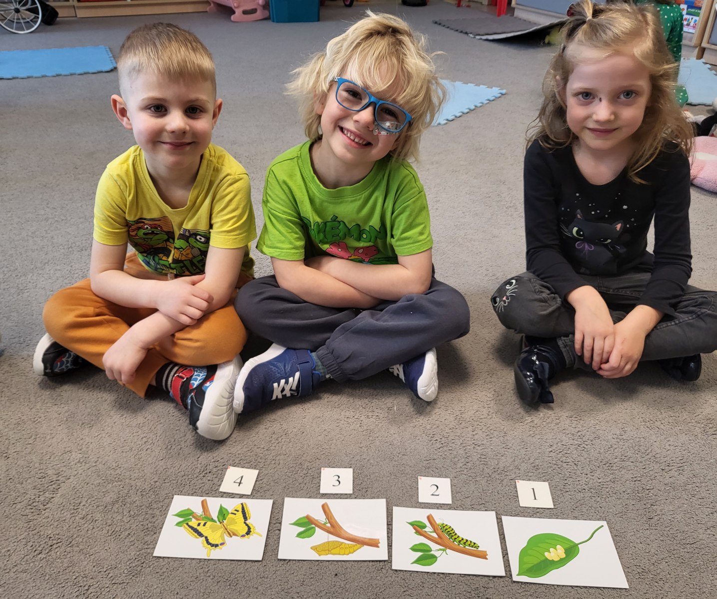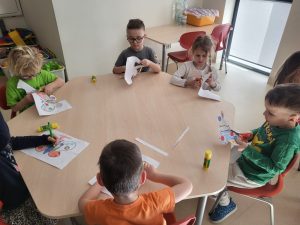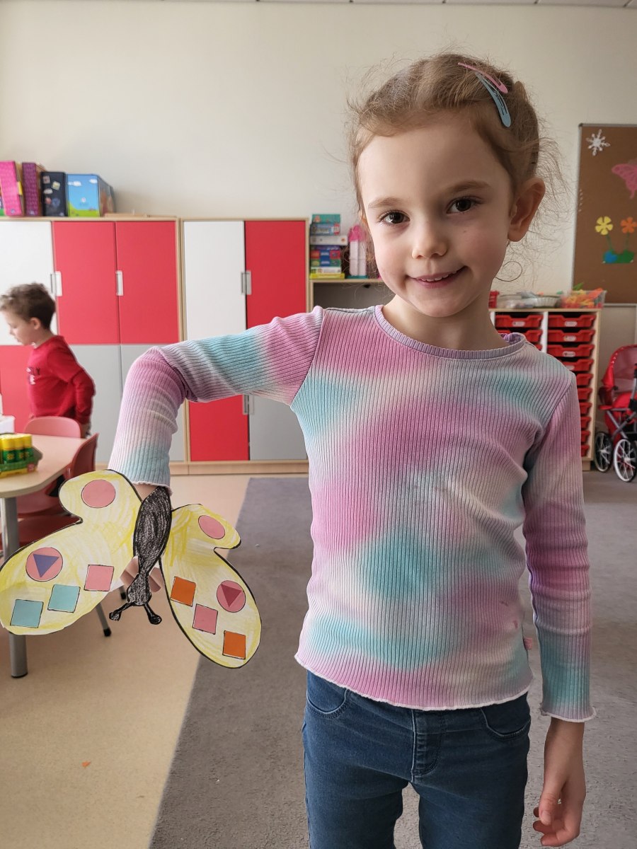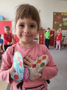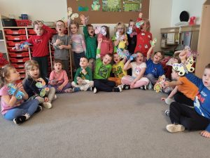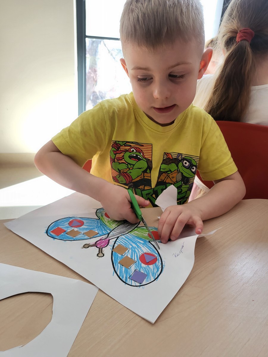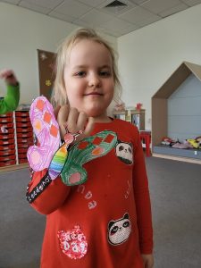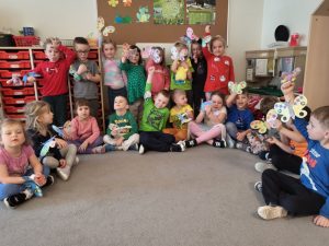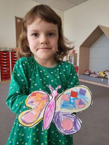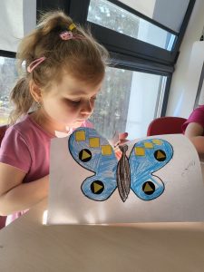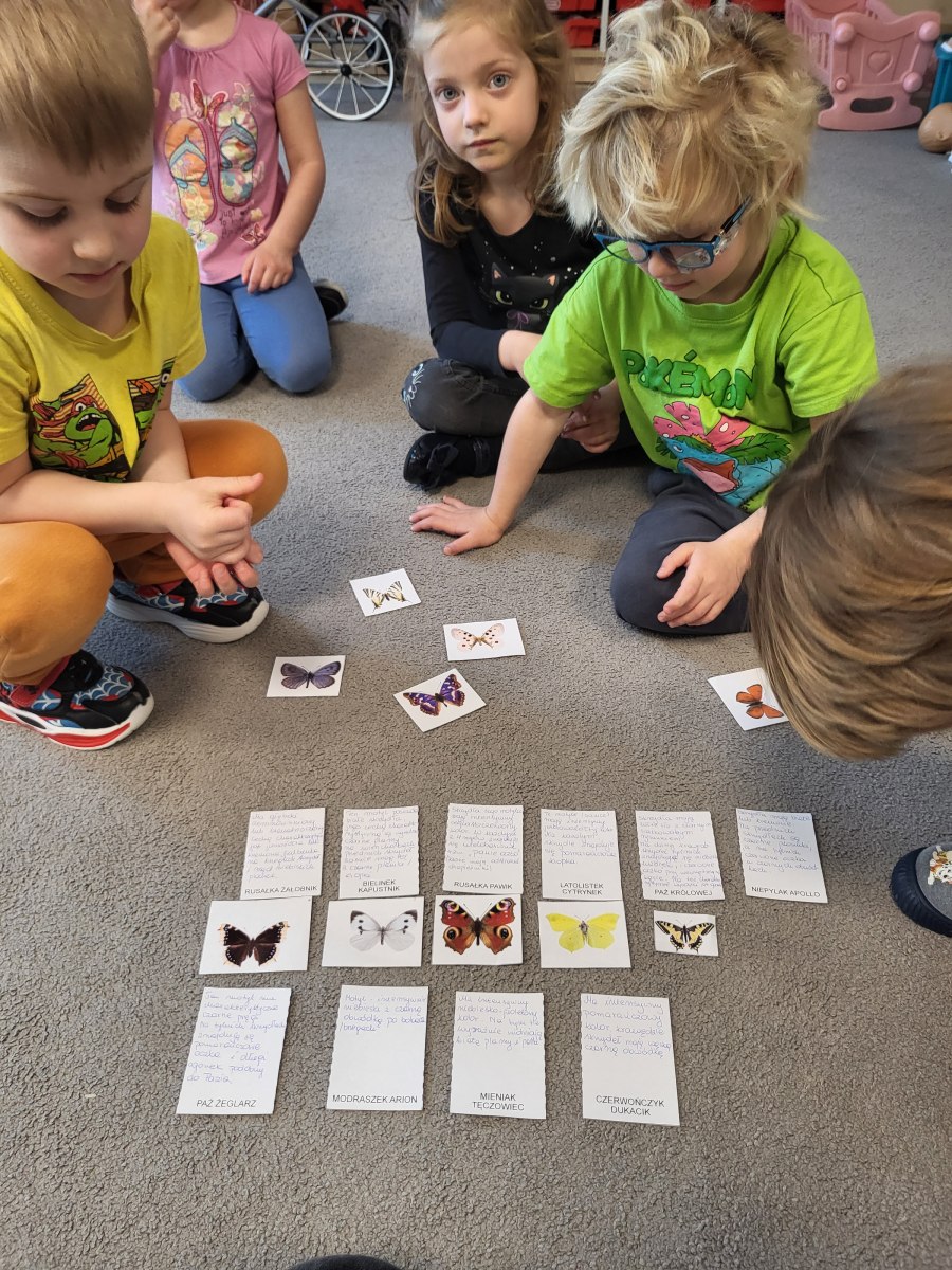 Poznaliśmy cykl życia motyla czyli fascynującą metamorfozę tego owada z gąsienicy do pięknego motyla. Przedszkolaki rozwiązywały zagadki obrazkowe, dzięki którym nauczyły się nazw motyli występujących w Polsce. Nie zabrakło zabaw ruchowych w motyle i gąsienice. Na koniec dzieci wykonały piękne bransolety – motyle.