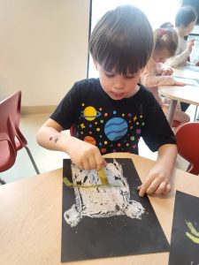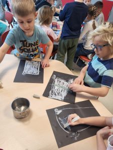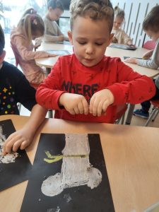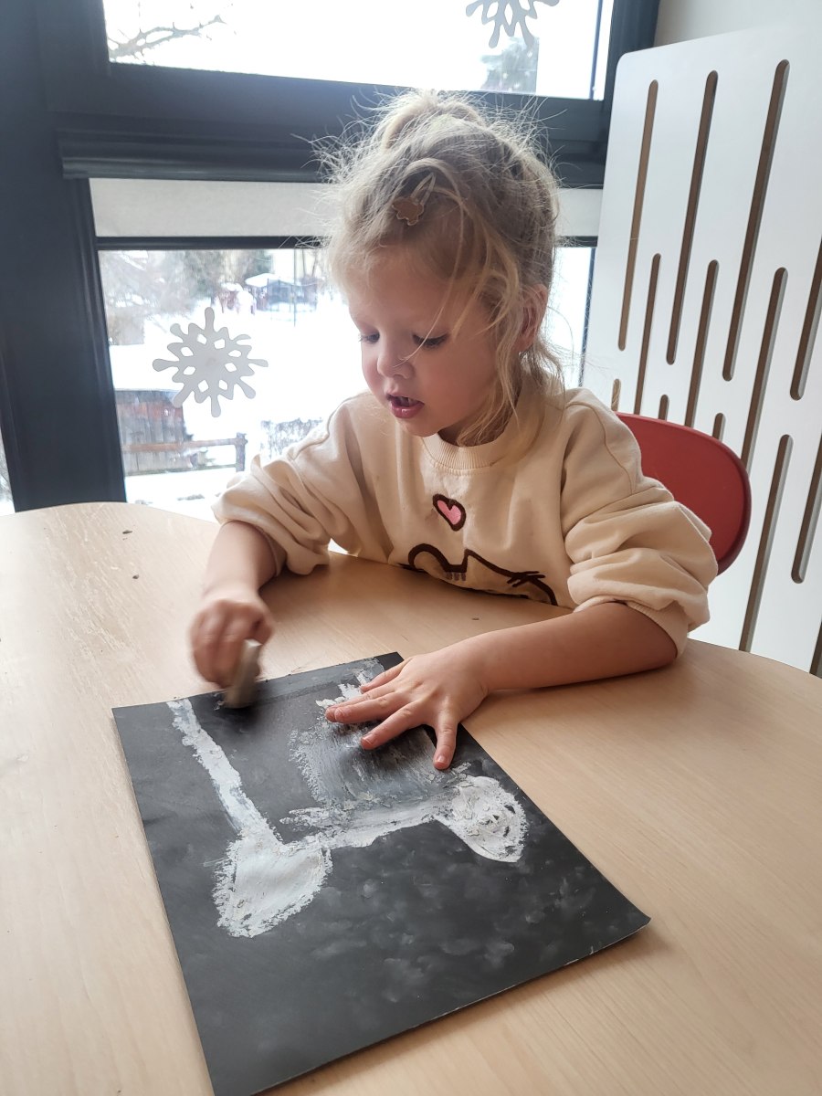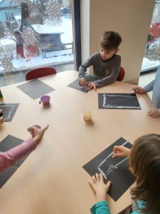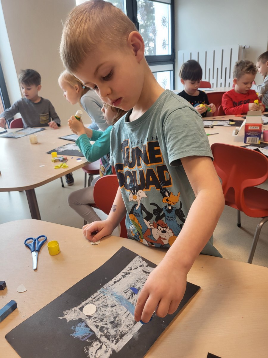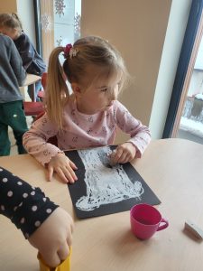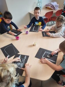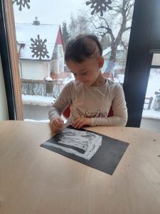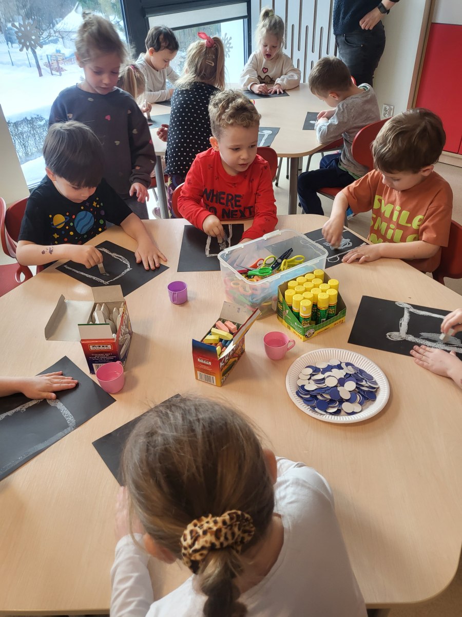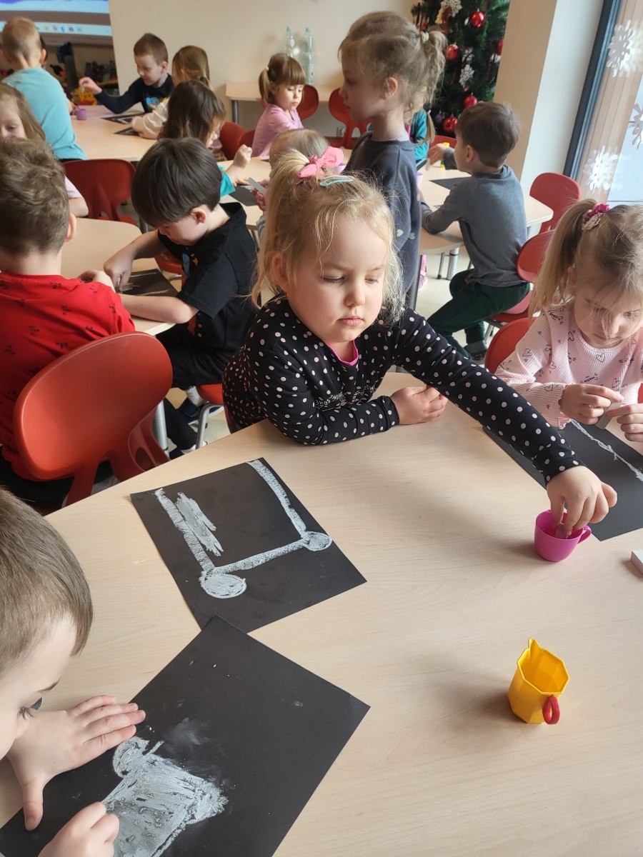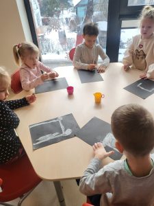 „Pszczółki” wykonały także pracę plastyczną „Miś Polarny”, która była zadaniem styczniowym w ramach projektu edukacyjnego „Kreatywne Prace Plastyczne”. Polegała ona na kolorowaniu sylwety misia zwilżoną kredą na ciemnym tle. Wszystkie Misie polarne wyszły pięknie i oryginalnie.