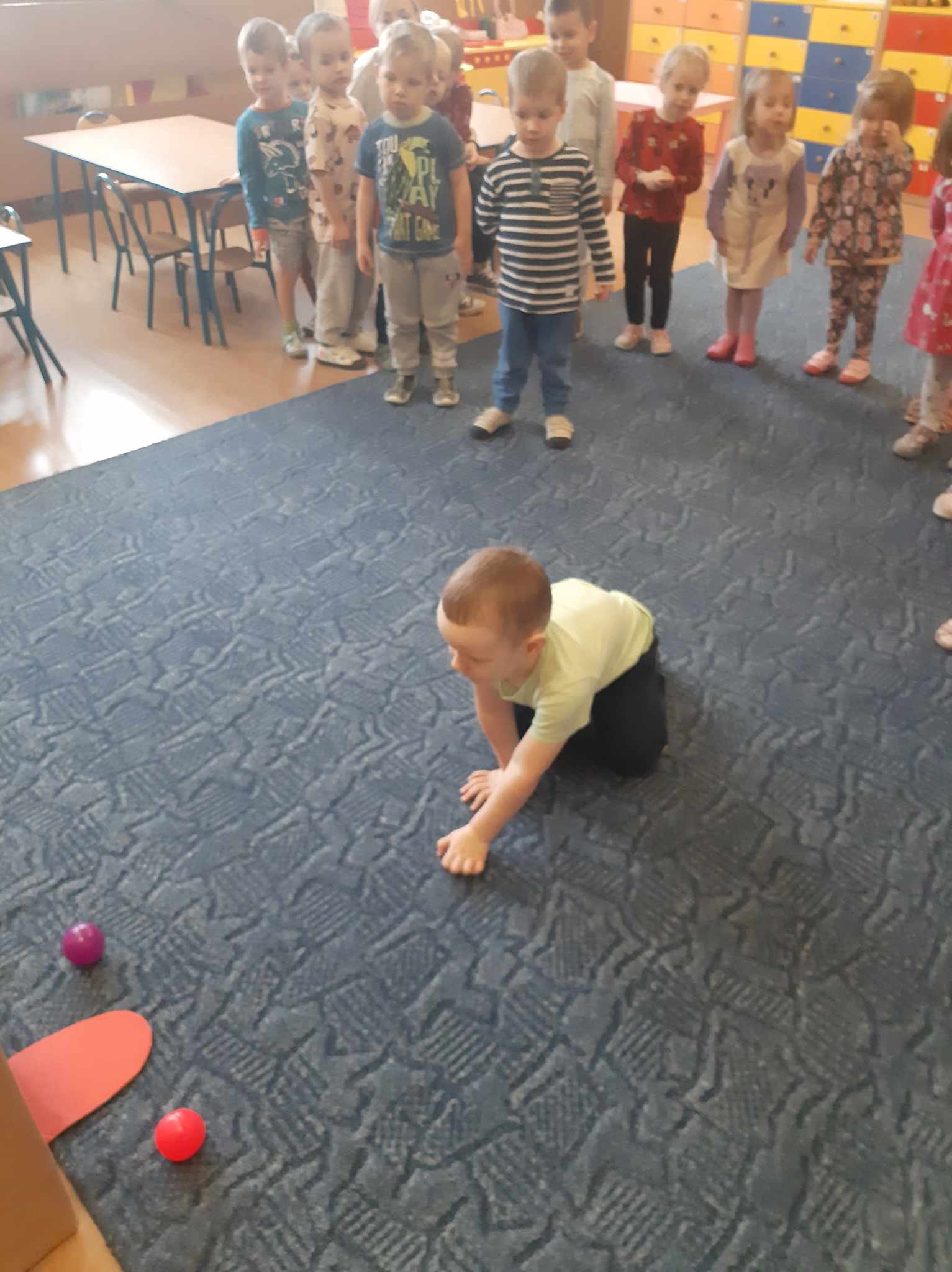 24 listopada uroczyście i wesoło obchodziliśmy Dzień Pluszowego Misia. Dzieci wysłuchały bajki pod tytułem „Złotowłosa i trzy niedźwiadki”, liczyły i układały misie od najmniejszego do największego. Z zainteresowaniem słuchały ciekawych informacji i opisywały wyglądy poszczególnych misiów: brunatnego, polarnego, koala i pandy. Nie zabrakło też misiowej gimnastyki buzi i języka, zabaw do różnych piosenek o misiach. Zabawa sensoryczna z Misiem gniotkiem sprawiła im duża frajdę. Na koniec każde dziecko dorysowywało brakujące elementy do sylwety misia. Chętne dzieci ćwiczyły sprawność ruchową ręki poprzez celowanie piłeczkami do kartonowego misia.