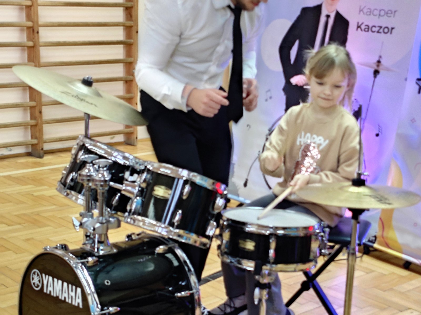 8 stycznia nasze przedszkolaki po raz kolejny wzięły udział w audycji muzycznej prowadzonej przez Szkołę YAMAHA. Prowadzącym był p. Radosław Cioch, a „bohaterami” spotkania były instrumenty perkusyjne. Dzieci poznały m.in.: dzwonki, ksylofony, djembe, conga, rototomy, klasyczny zestaw perkusyjny oraz perkusję elektroniczną. Pan Radek opowiadał nam o tych instrumentach, a grał na nich towarzyszący mu Patryk Magoń, prawdziwy wirtuoz instrumentów perkusyjnych. Mieliśmy przyjemność wysłuchać kilku gorących hitów i pobujać się w ich rytmie. Oczywiście największą frajdą dla przedszkolaków była możliwość zagrania na prezentowanych instrumentach.