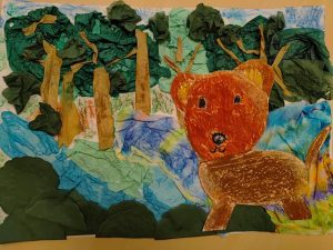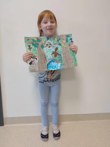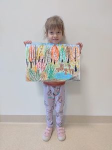 MAJA, ALA i JULIA z grupy Jeżyków wzięły udział w Wojewódzkim Konkursie Plastycznym pt. ,,Św. Hubert wzorem współczesnego ekologa” Tegoroczny temat przypisany do naszej kategorii wiekowej to: ,,Leśne źródło – kto tu zagląda?”