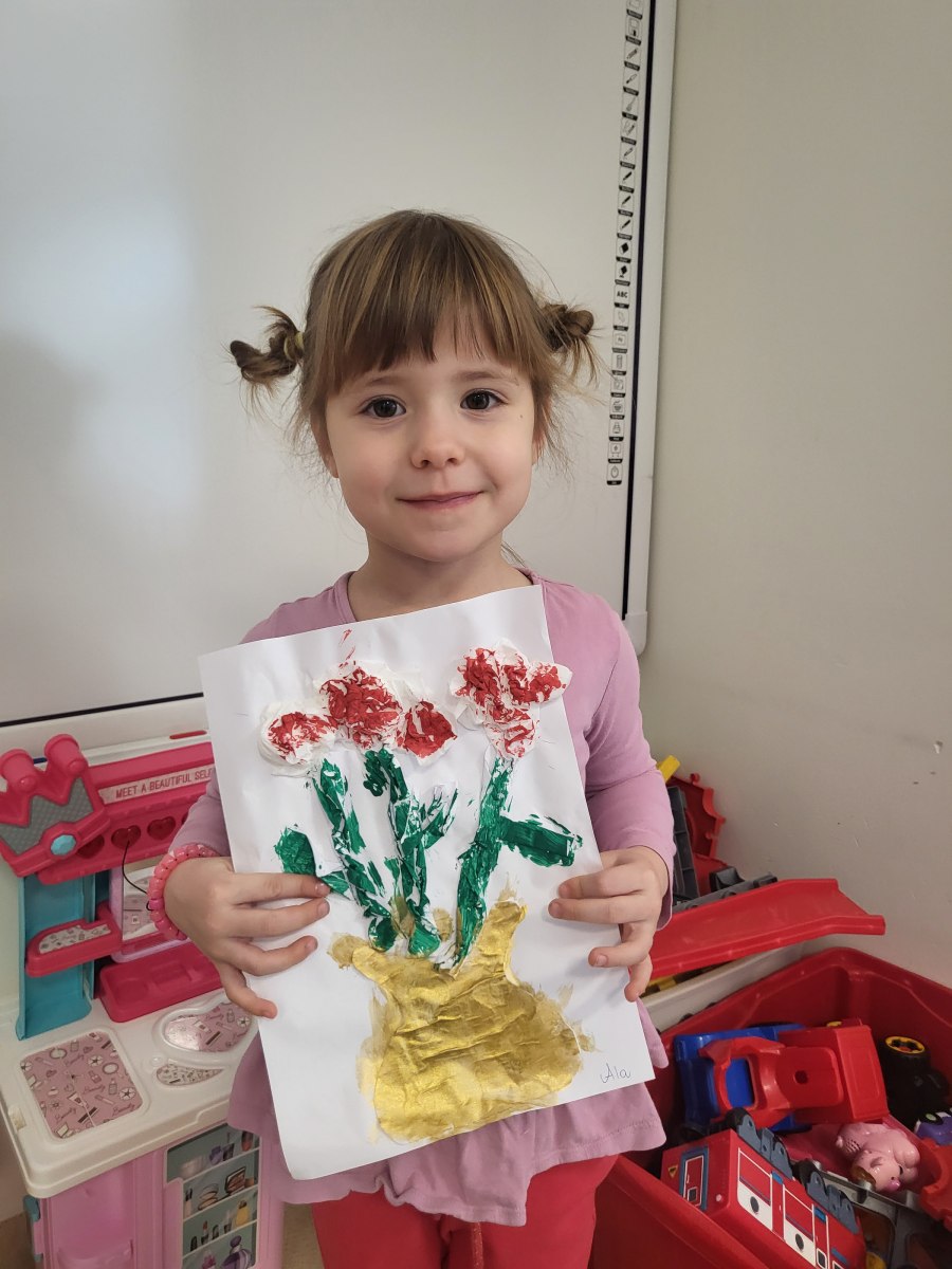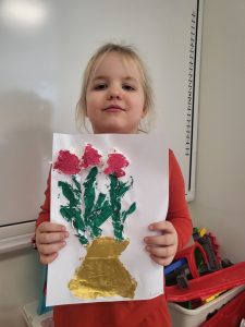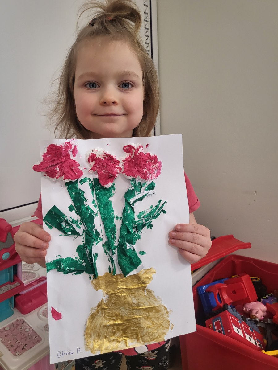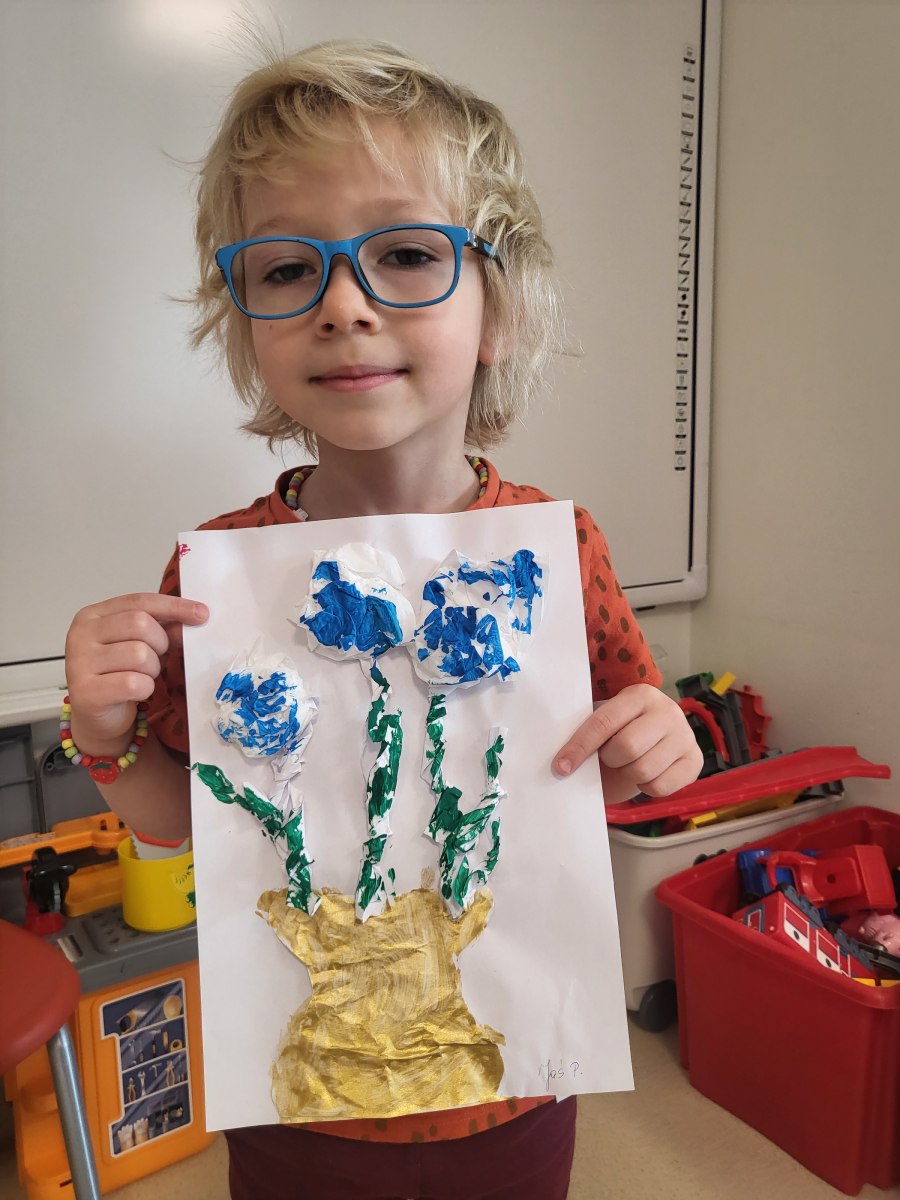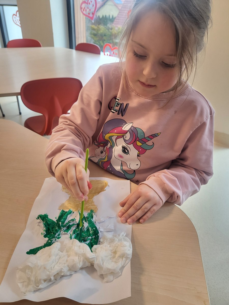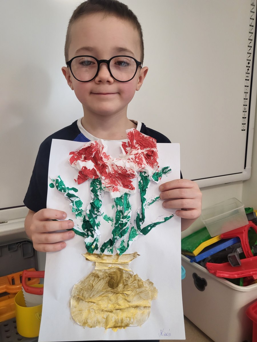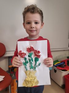 Każde dziecko pracowicie wykleiło róże i pomalowało na wybrane kolory. Wszystkie prace wyszły przepięknie !