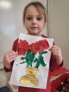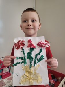 W ramach Projektu Edukacyjnego pt. „Kreatywne Prace Plastyczne” zadaniem na luty było wykonanie róż w wazonie z pomiętego papieru.