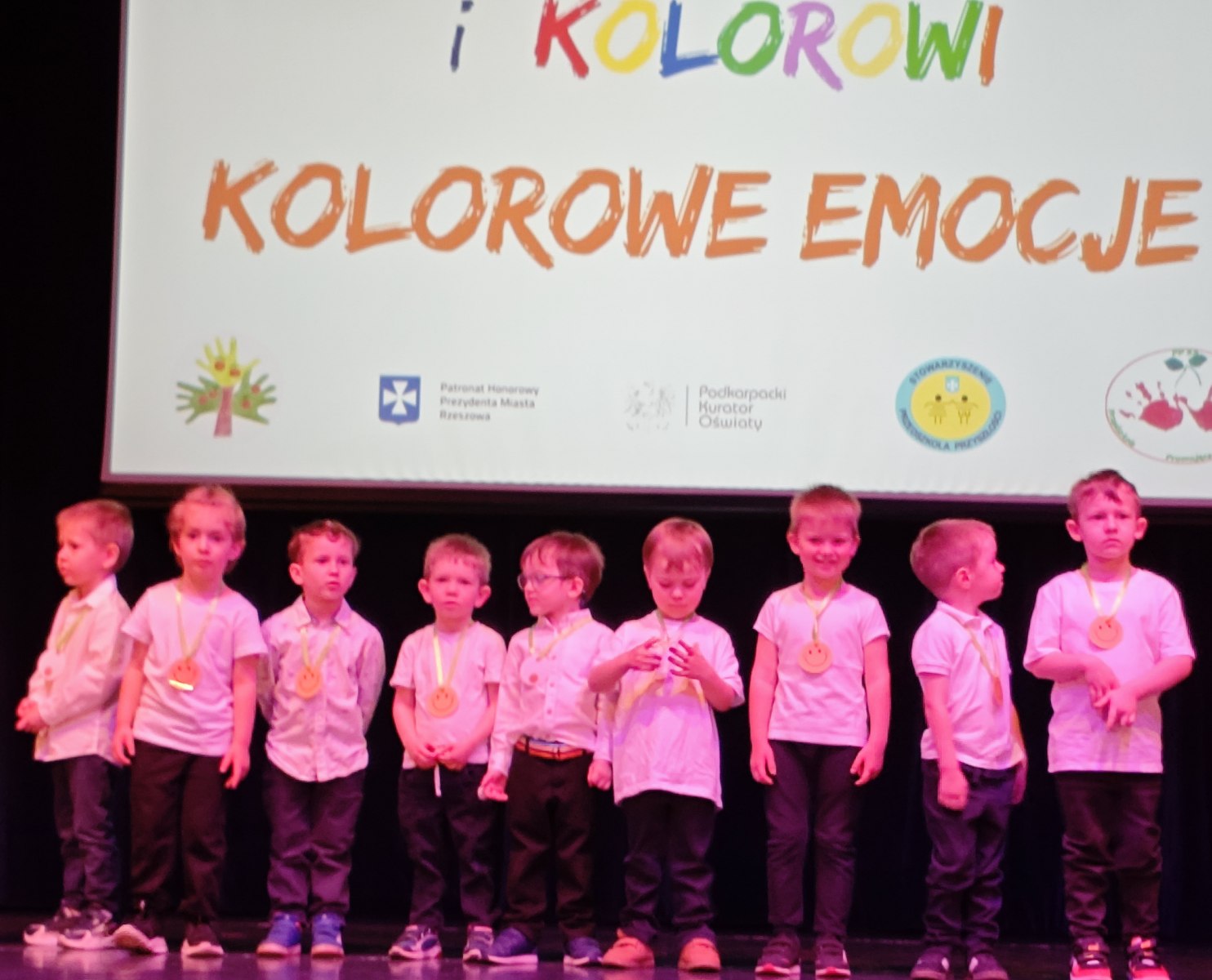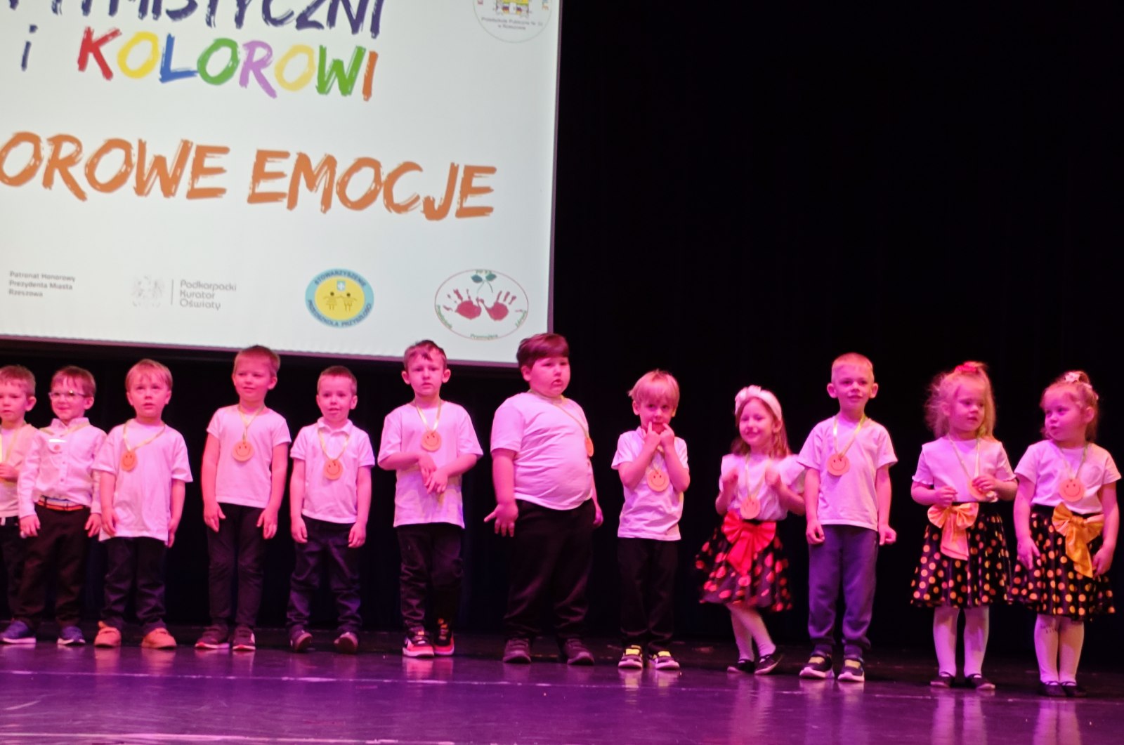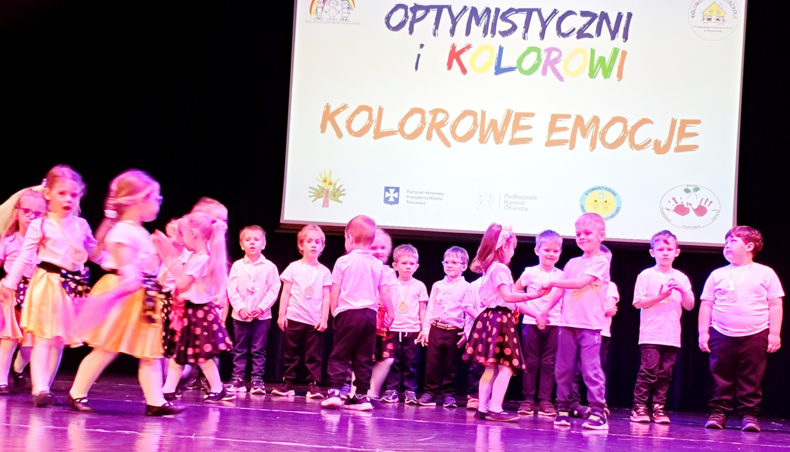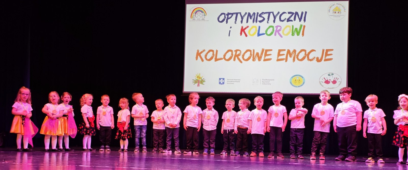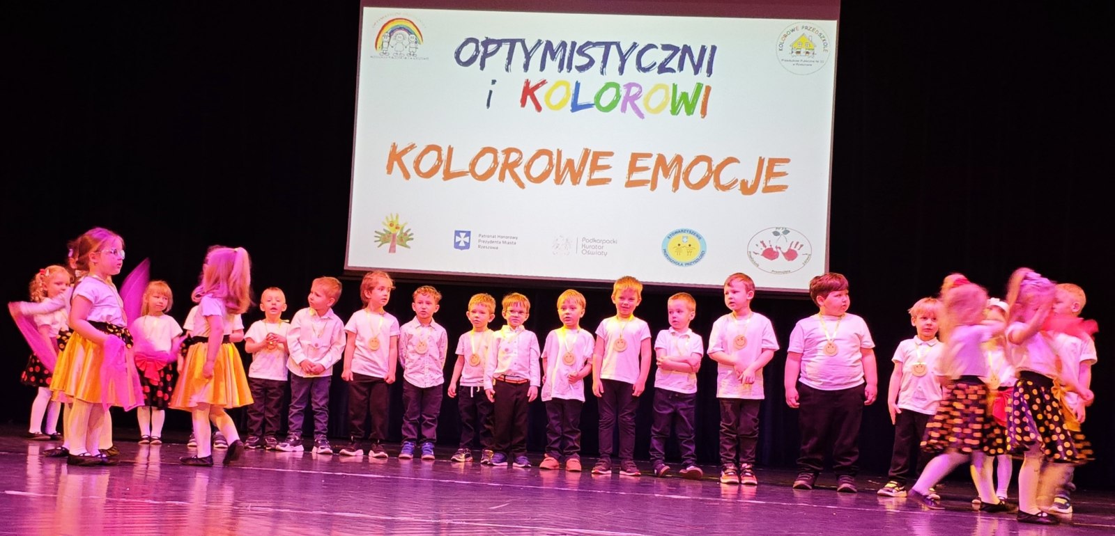 W piątek, 17 kwietnia – BIEDRONKI z gr. II wzięły udział w przeglądzie artystycznym „Optymistyczni i Kolorowi”. Ta coroczna impreza dla rzeszowskich przedszkolaków ma na celu przede wszystkim promowanie radości, rozwijanie optymizmu, kreatywności, budowanie więzi oraz edukację zdrowotną i ekologiczną, i skupia się na ich występach wokalnych i tanecznych. Tegoroczna, XII już edycja przeglądu odbyła się pod hasłem „KOLOROWE EMOCJE”.