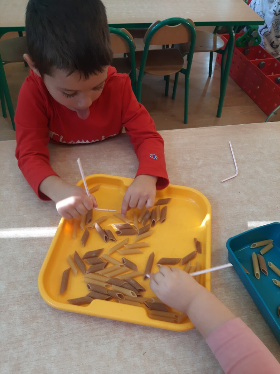 - ćwiczyliśmy chwyt pęsetowy z wykorzystaniem klamerek podając liście, łowiąc ,,makaronowe rybki”,