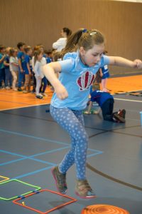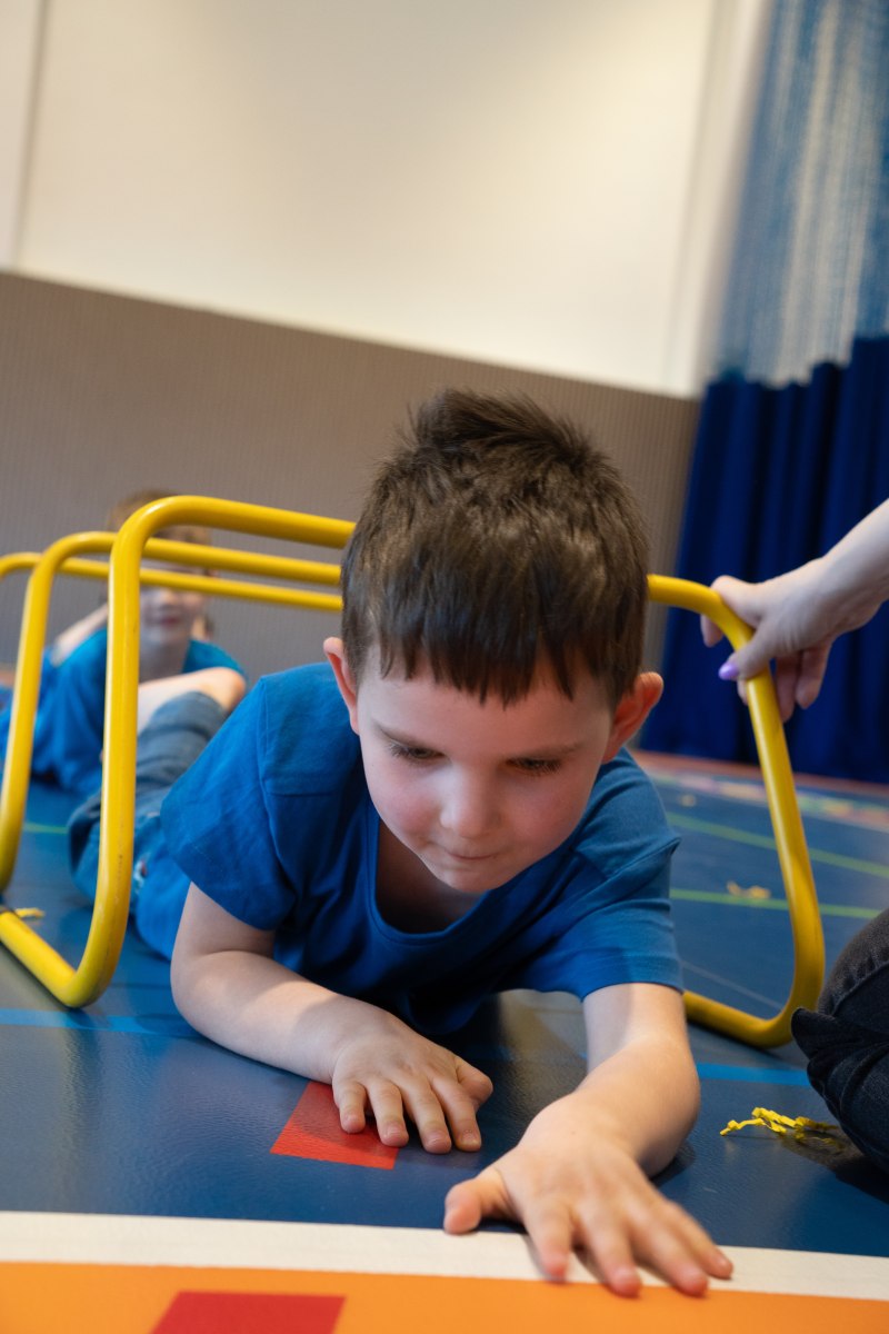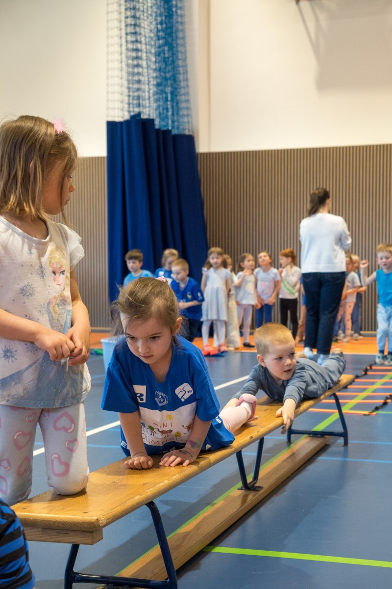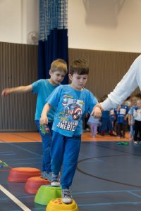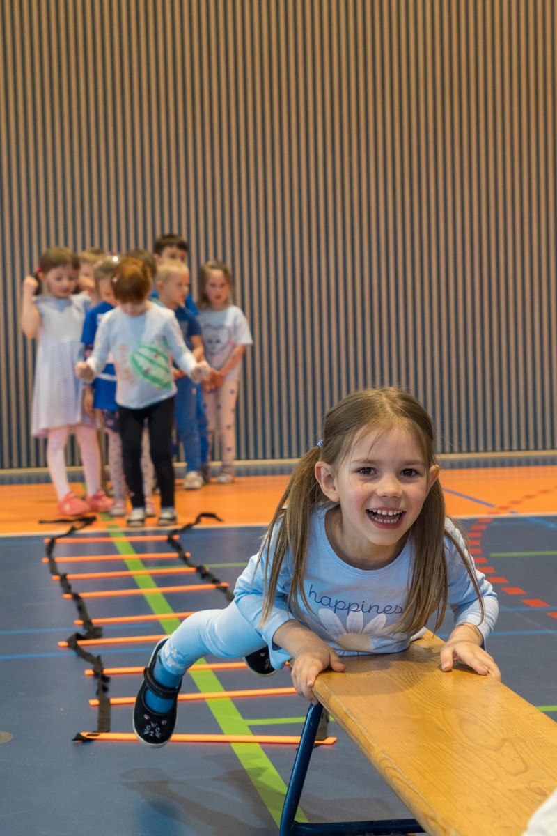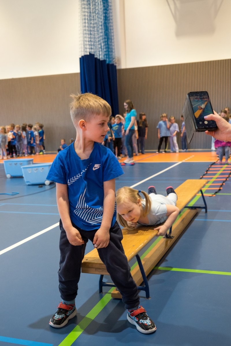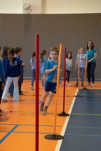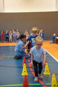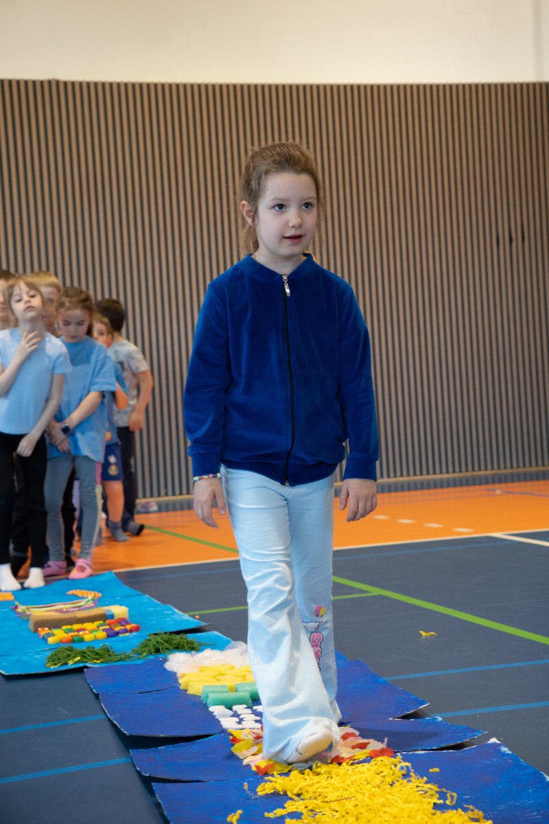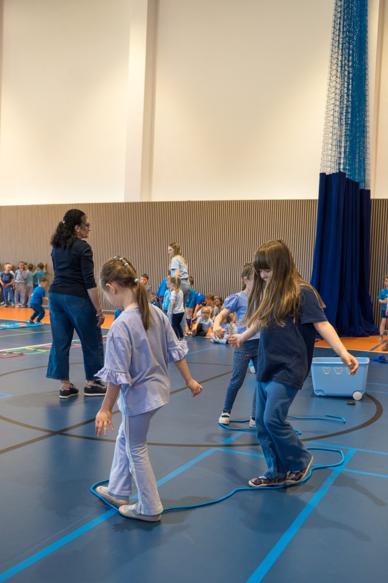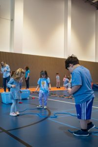 Na uczestników czekało pięć różnorodnych stacji sportowych, które każda grupa pokonywała z ogromnym zaangażowaniem. Wśród konkurencji znalazły się m.in. niebieski slalom, ścieżka sensoryczna, rzuty do celu, „podłoga to lawa” oraz tor przeszkód. Za wykonanie każdego zadania dzieci otrzymywały pieczątki, a skompletowanie wszystkich było dla nich powodem do dumy i oznaczało zdobycie tytułu prawdziwego „niebieskiego sportowca”.
