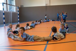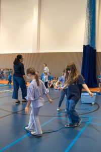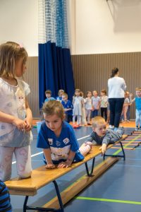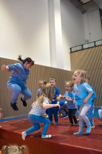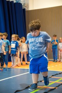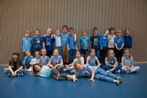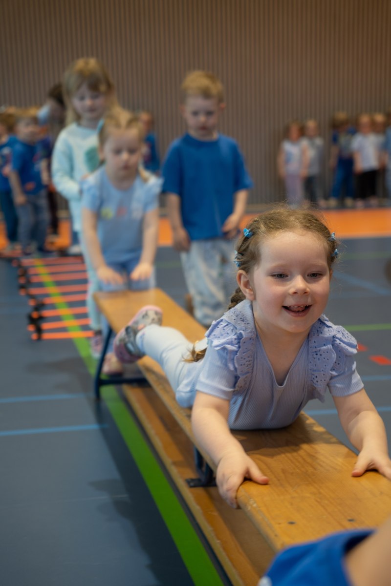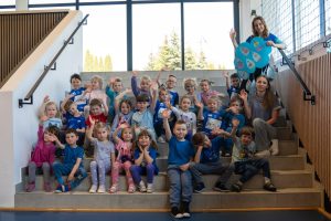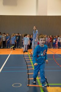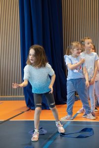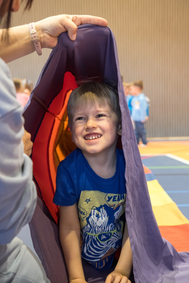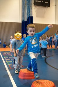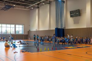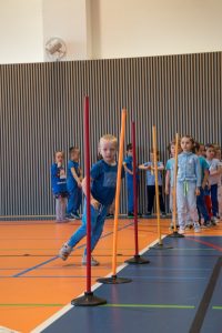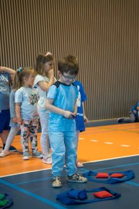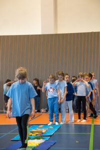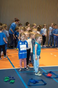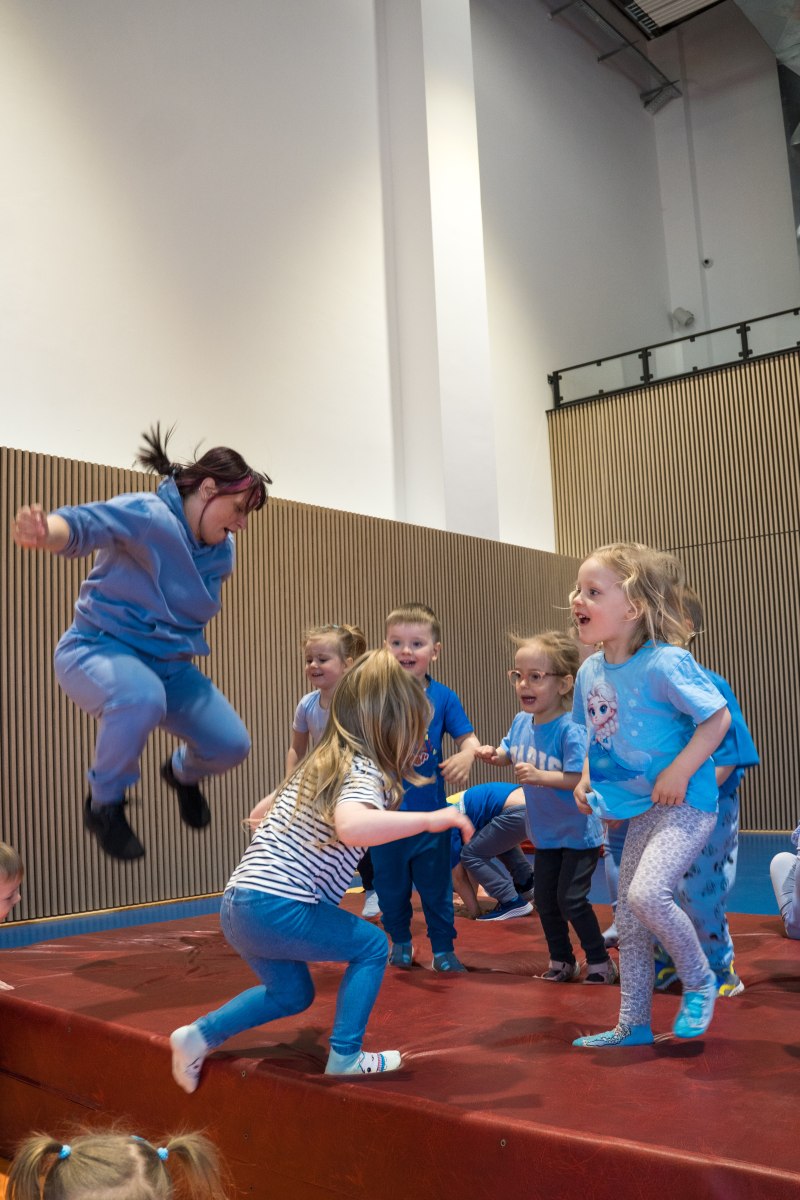Tego dnia całe przedszkole przybrało niebieskie barwy – symbol solidarności z osobami w spektrum autyzmu. Dzieci rozpoczęły dzień od zajęć poświęconych tej tematyce, podczas których rozmawiały o różnorodności, empatii i wzajemnym szacunku. Następnie wszystkie grupy spotkały się na sali gimnastycznej, gdzie wspólnie odśpiewaliśmy Hymn Niebieskich Igrzysk, wprowadzając się w wyjątkową atmosferę wydarzenia.