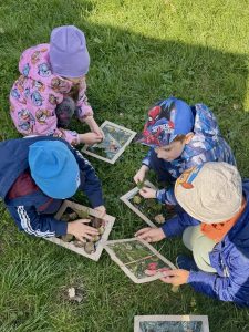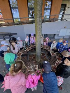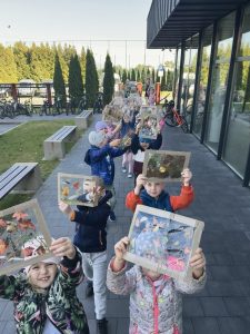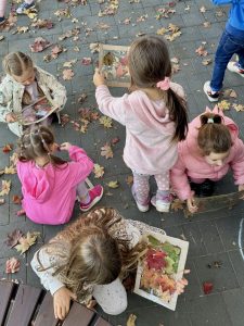 W tym tygodniu w uroczyście powitaliśmy jesień. Z tej okazji „Sówki” wybrały się na spacer, aby podziwiać zmieniającą się przyrodę i poszukać jej kolorowych skarbów. Dzieci z zaciekawieniem obserwowały spadające liście, zbierały te o najpiękniejszych kształtach i barwach, a następnie – korzystając ze specjalnie przygotowanych ramek – tworzyły z nich swoje małe, jesienne dzieła sztuki.