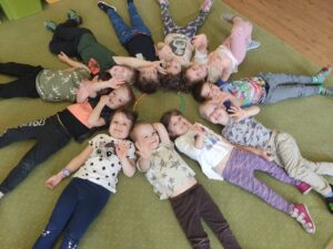 Piątkowe przedpołudnie WIEWIÓRECZKI z gr. II spędziły tak, jak lubią najbardziej, czyli… pomysłowo i kreatywnie! Dzieci budowały z klocków LEGO, ze słomkowych patyczków, korzystały z liczmanów i klocków konstrukcyjnych. Zrobiły też fantastyczną piankolinę, czyli masę sensoryczną z mąki ziemniaczanej, pianki do golenia i odrobiny płynu do mycia naczyń.