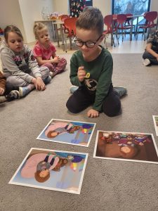 „Pszczółki” podawały własne przykłady radzenia sobie z nudą. Następnie nauczyliśmy się wspaniałego tańca o nudzie: https://youtu.be/Y2RT3bJhRx0?si=XMTrKUSo78TaTFft