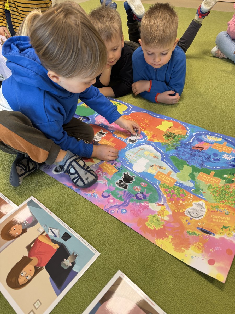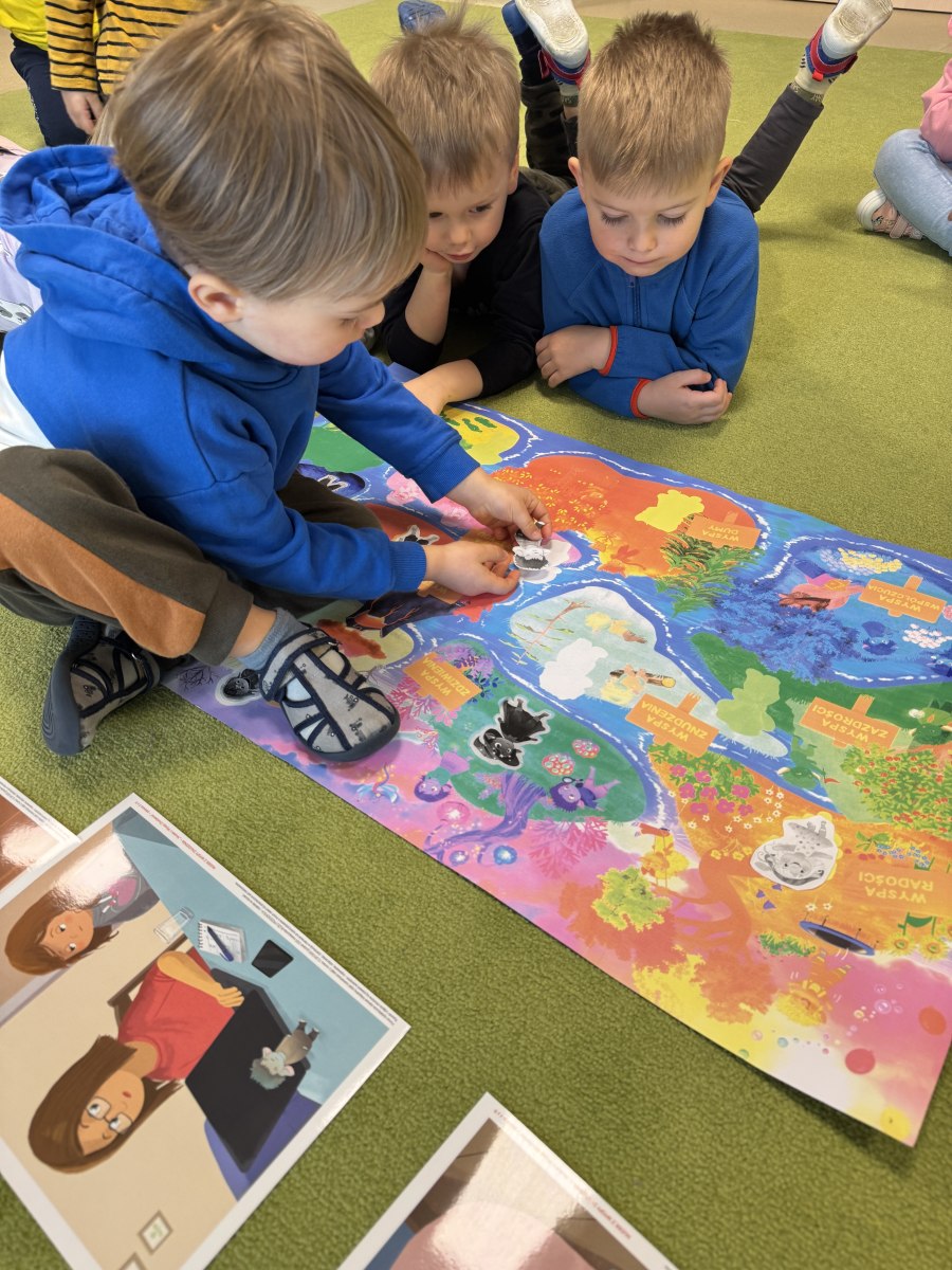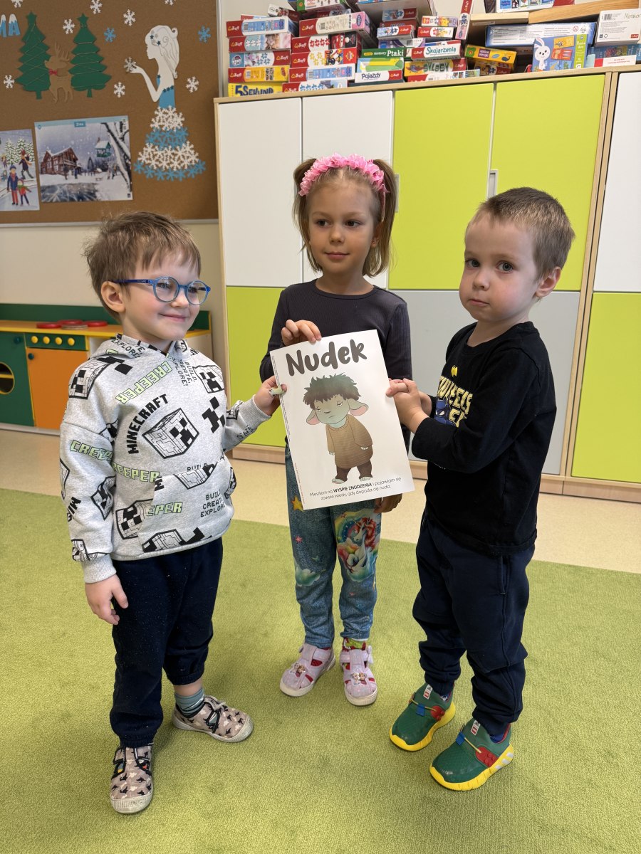 W ramach programu edukacyjnego „Czuciaki z Krainy Emocji” dzieci poznały Nudka z wyspy Znudzenia. Zajęcia rozpoczęły się od obejrzenia filmu, który wprowadził dzieci w temat emocji, jaką jest nuda.