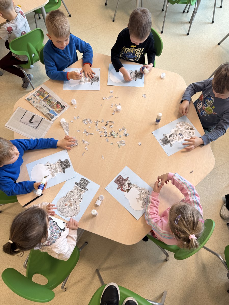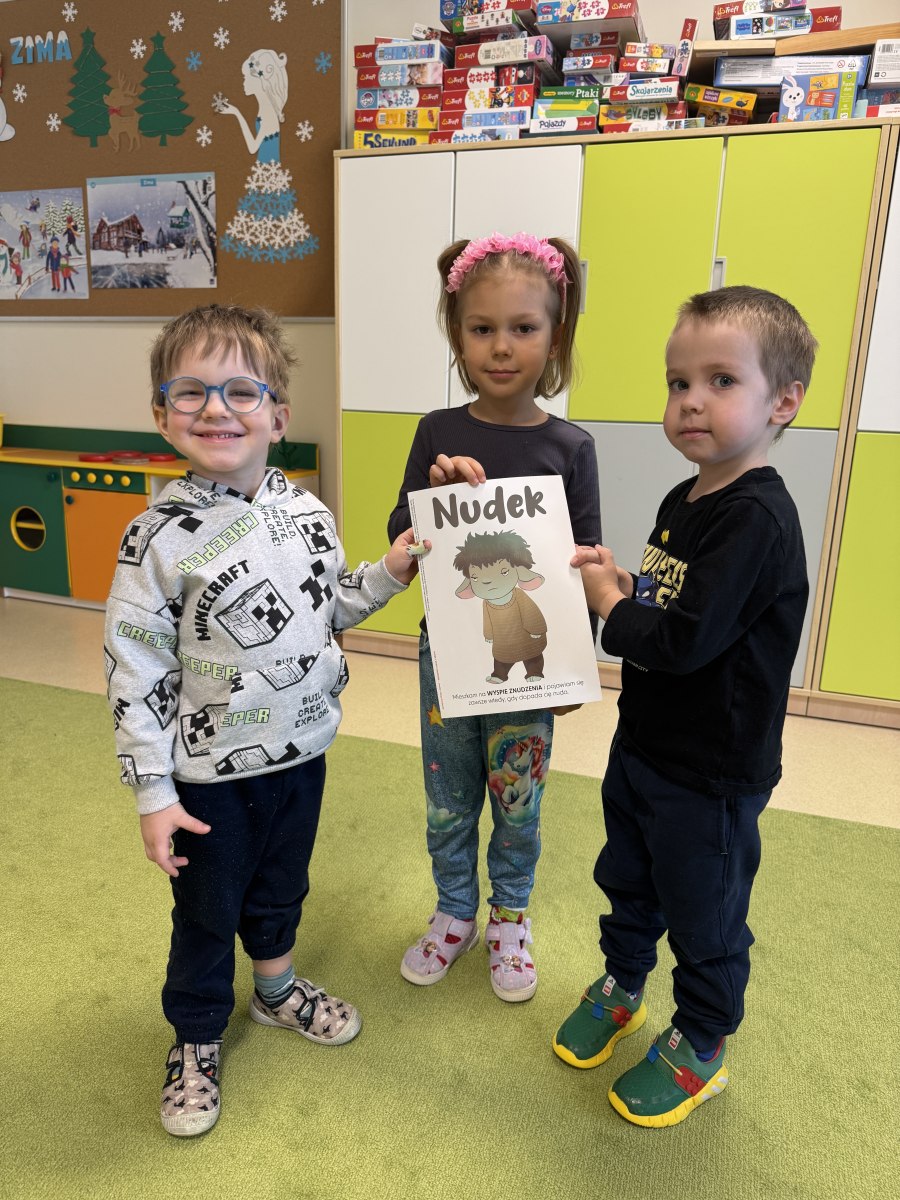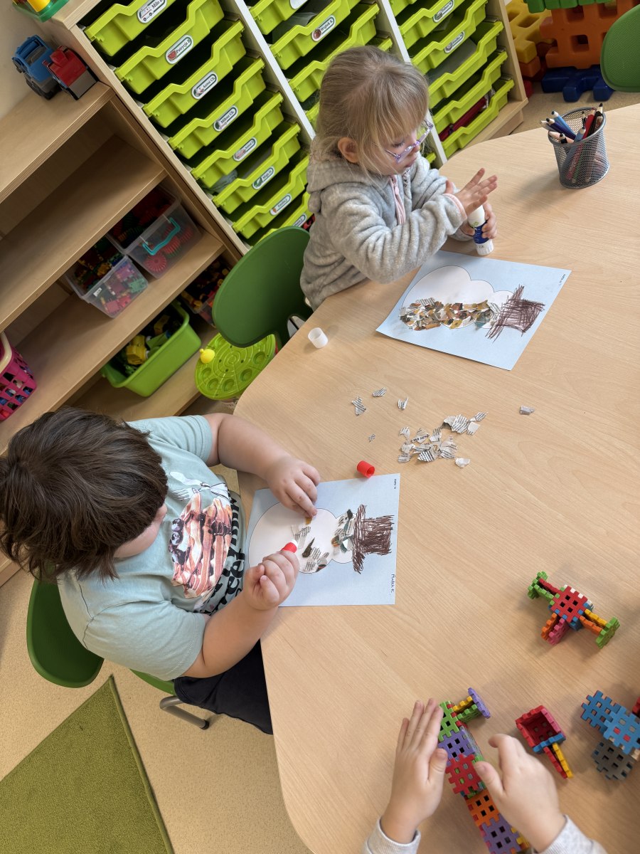Następnie wysłuchaliśmy opowiadania o Nudku, które pomogło lepiej zrozumieć tę emocję. Na zakończenie dzieci wykonały pracę plastyczną inspirowaną nudą, wyrażając swoje uczucia poprzez kolory i twórcze pomysły.