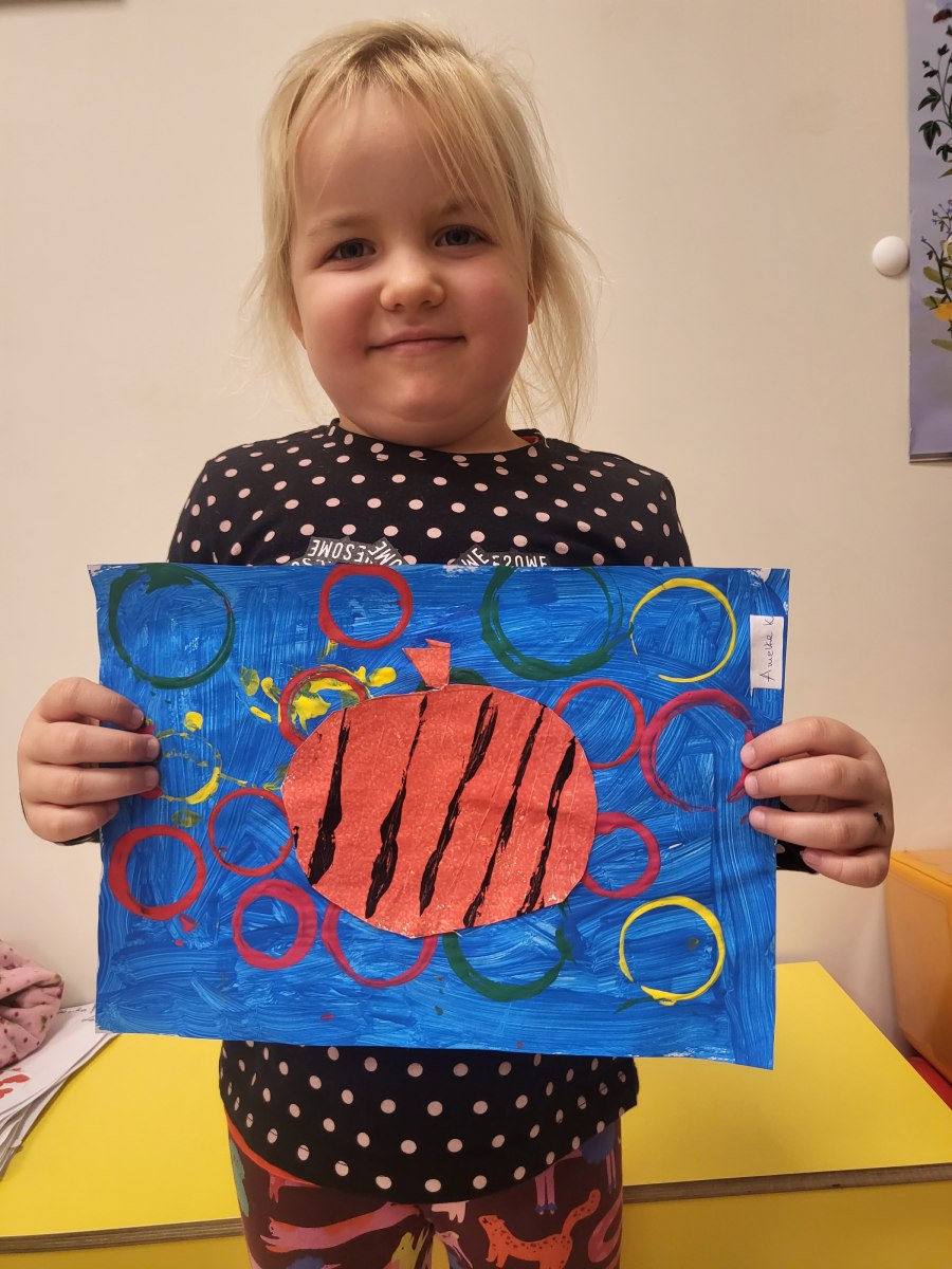 W listopadzie dzieci wykonały prace pt. „Dynie” w ramach Projektu Kreatywne Prace Plastyczne.