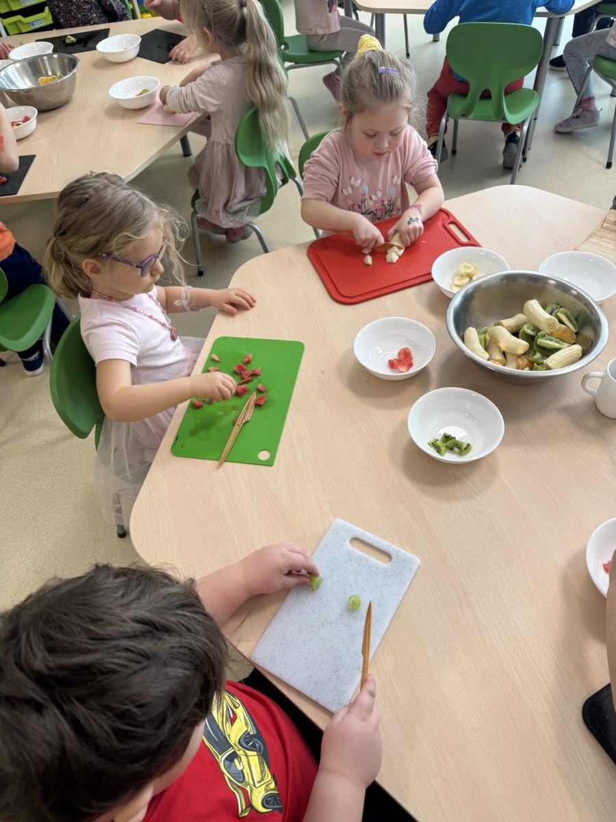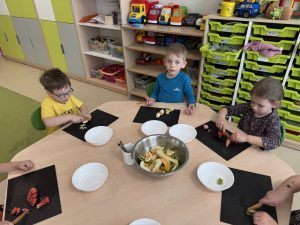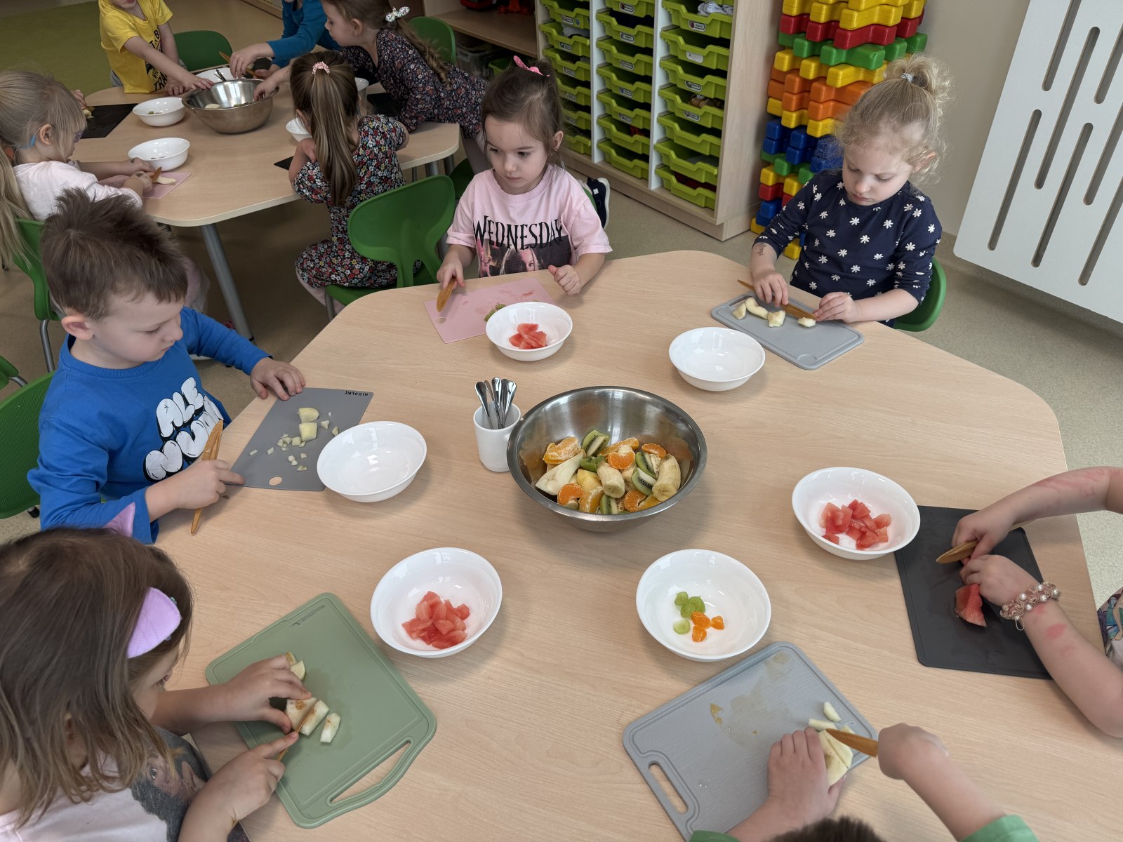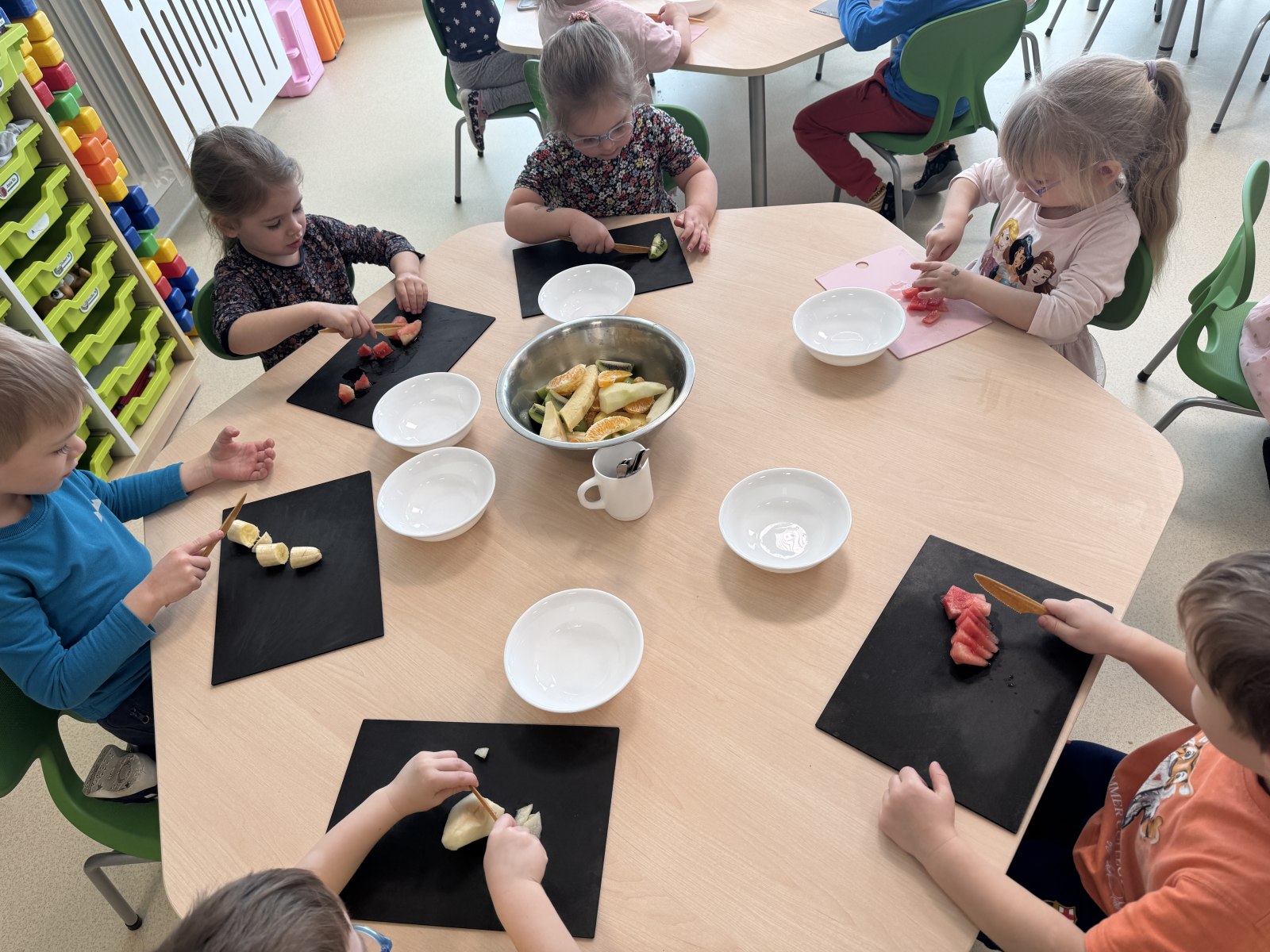 Serdecznie dziękujemy Rodzicom za przyniesienie owoców i pomoc w organizacji tych zajęć. Dzięki Państwa zaangażowaniu dzieci mogły przeżyć bardzo smaczne i radosne kulinarne doświadczenie.