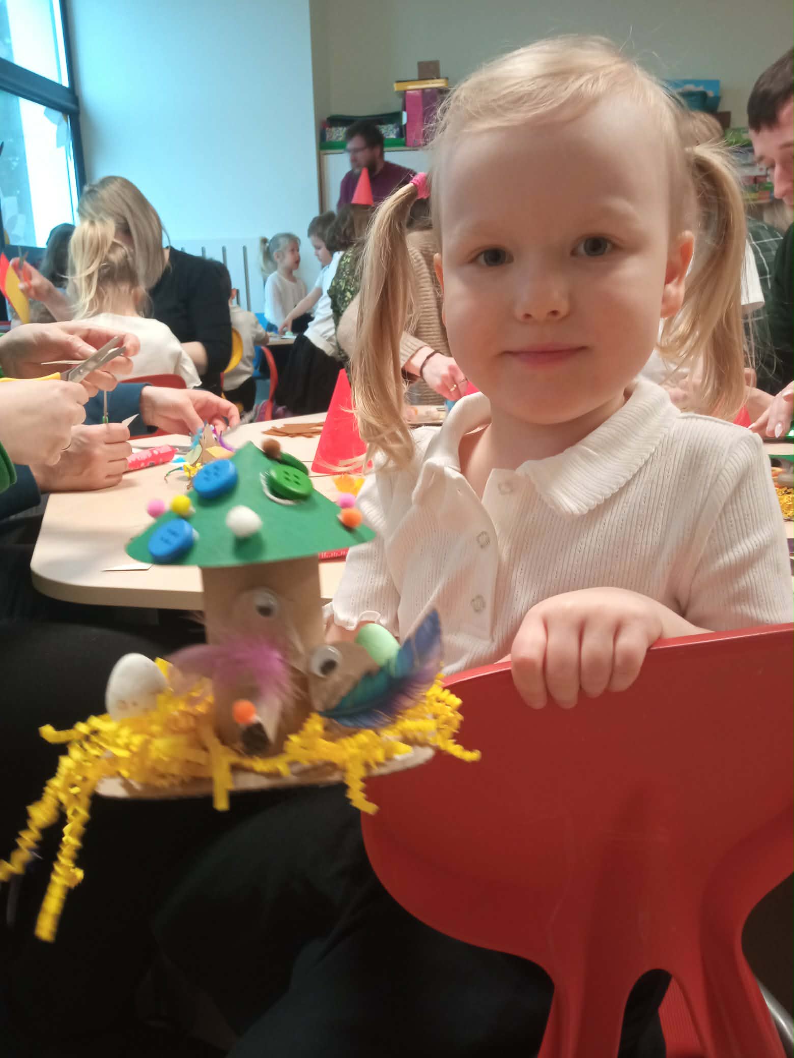 Nasze przedszkole zamieniło się dziś w prawdziwą ptasią krainę! Gościliśmy rodziców, którzy wspólnie ze swoimi pociechami oddali się twórczej pracy. Spotkanie rozpoczęło się od wzruszającego akcentu – dzieci, przebrane za małe bociany, zaprezentowały rodzicom przepiękny taniec. Po części artystycznej wszyscy zakasali rękawy: z papieru i darów natury powstawały pomysłowe karmniki oraz przytulne gniazdka. Efekty wspólnej pracy przerosły nasze oczekiwania, a uśmiechy na twarzach dorosłych i dzieci były dowodem na to, że czas spędzony razem jest najcenniejszy.