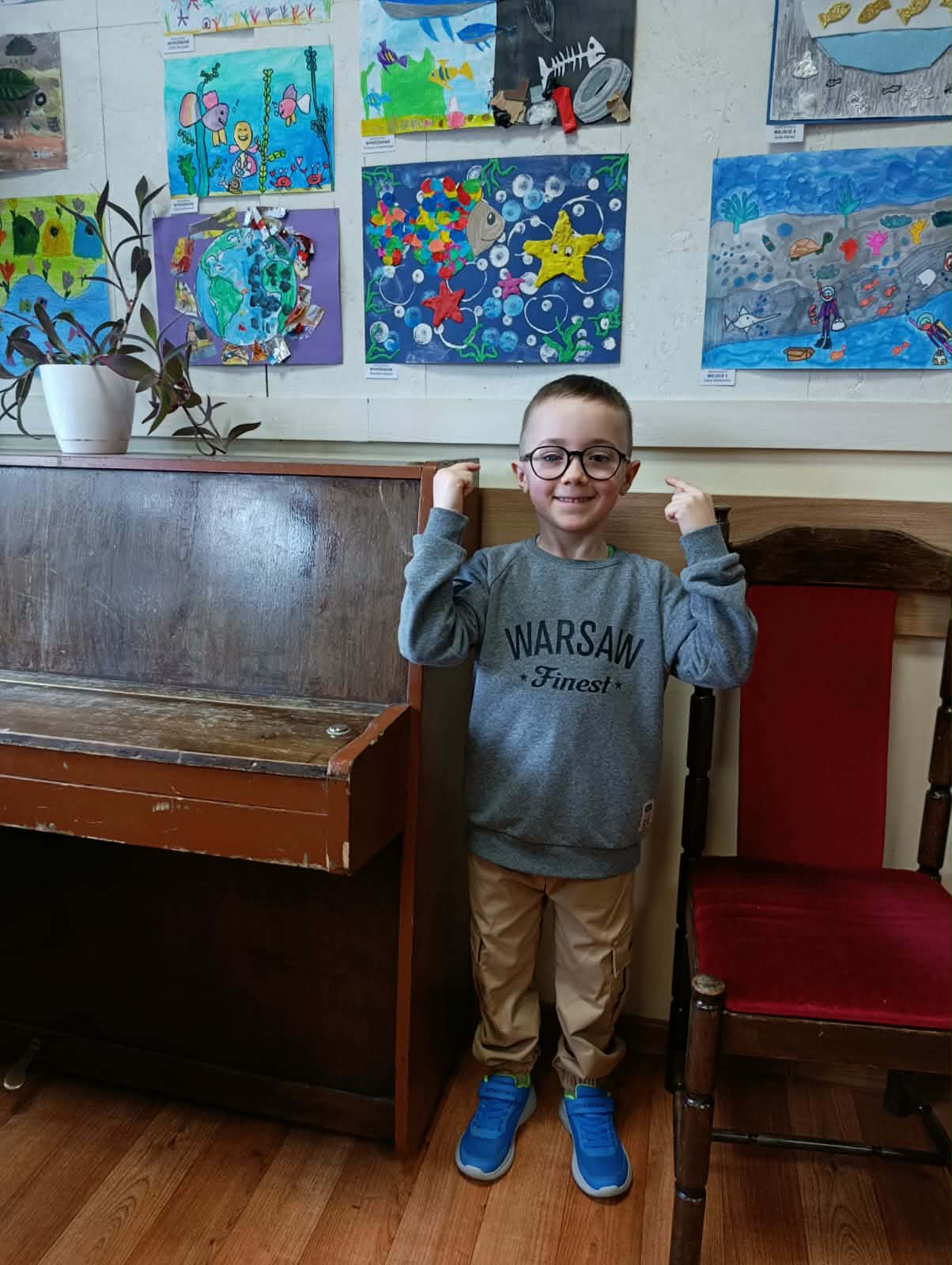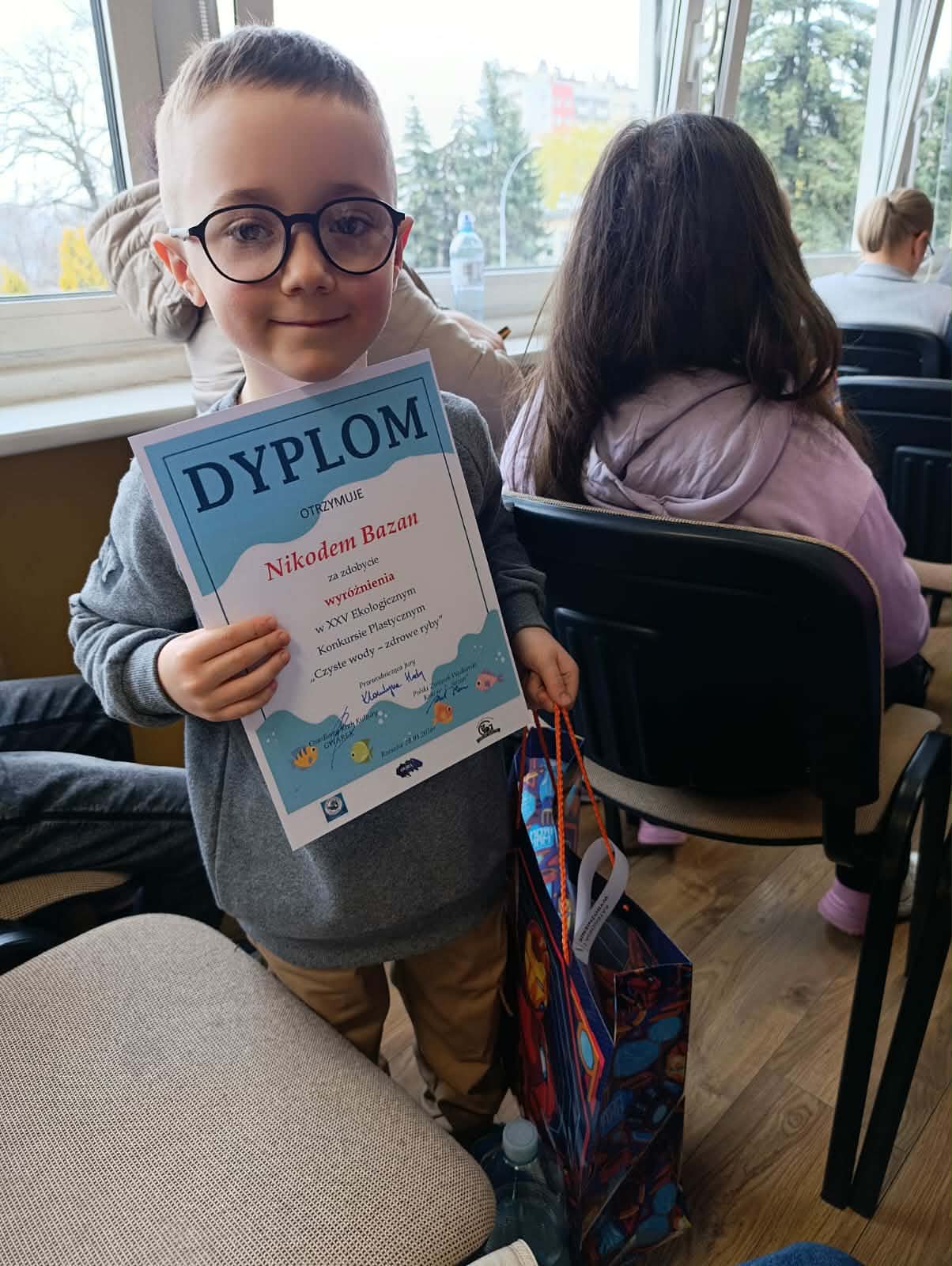 Z ogromną radością ogłaszamy, że nasz przedszkolak, Nikodem, zdobył wyróżnienie w konkursie plastycznym pod hasłem „Czyste wody – zdrowe ryby”! 🏆
