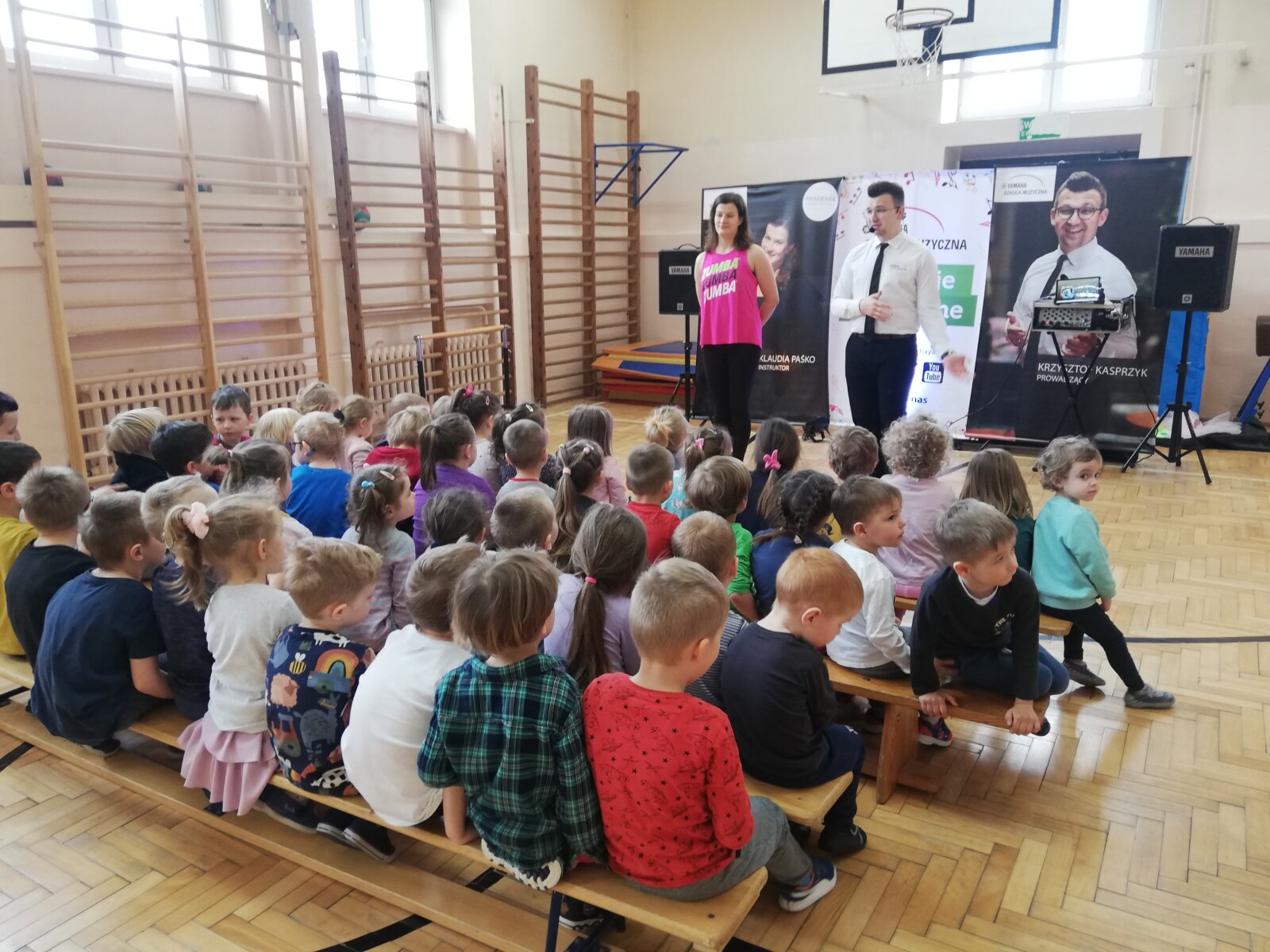 Podczas spotkania przedszkolaki poznały takie tańce jak: balet, salsa, disco dance oraz zumba. Dzieci chętnie zgłaszały się oraz brały udział w zabawach przygotowanych przez naszych gości.