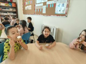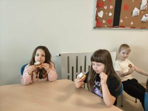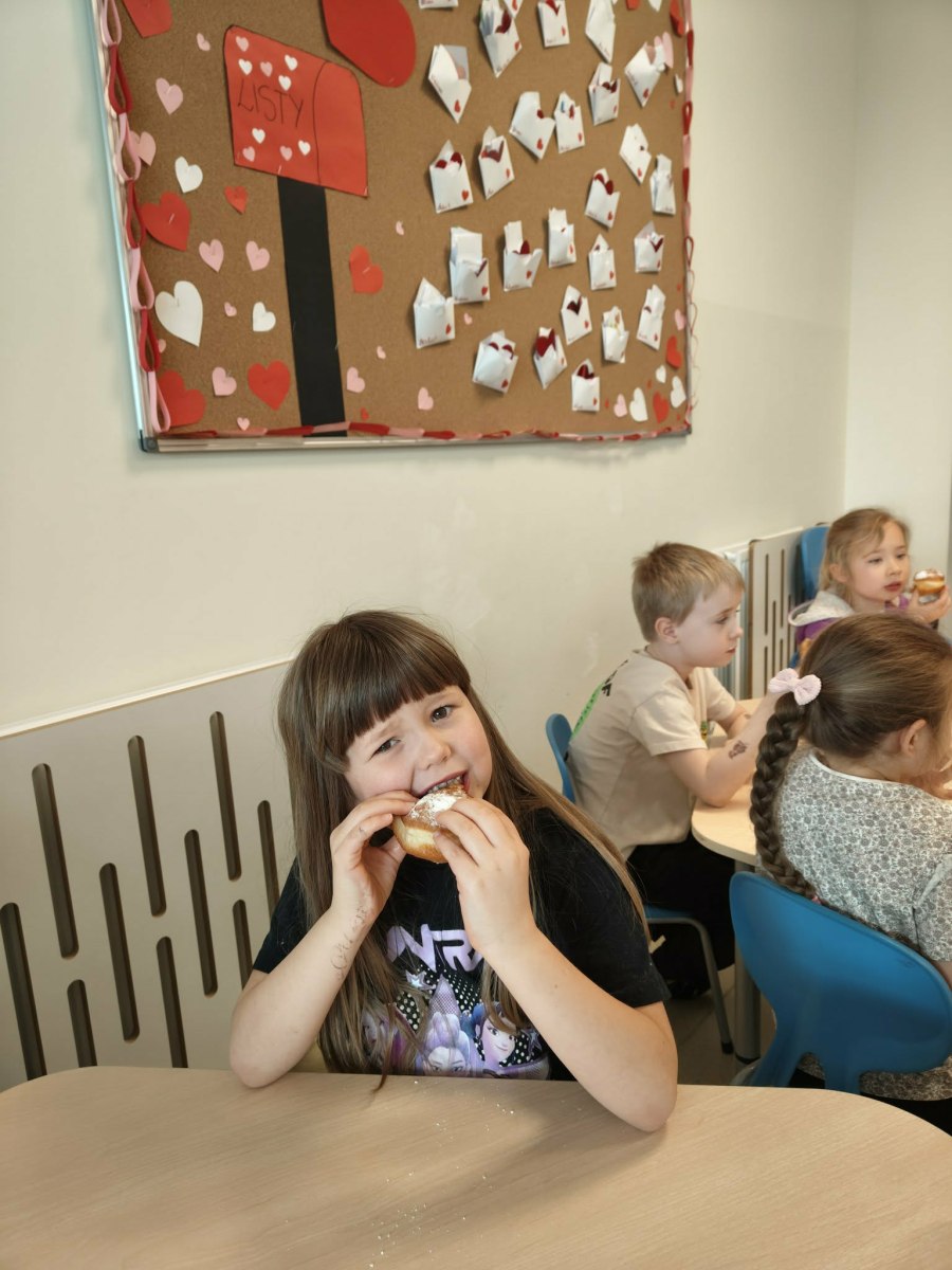 12 lutego świętowaliśmy w gr. Sówek ,,Tłusty Czwartek”, który jest najsłodszym dniem w roku. Zapowiada zbliżający się koniec karnawału i jest doskonałą okazją, aby skosztować przepysznych pączków i faworków. Tradycja mówi, że każdy z nas powinien tego dnia zjeść przynajmniej jednego pączka.