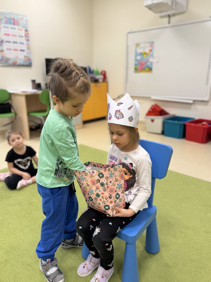 Było mnóstwo radości, serdecznych życzeń i uśmiechów. Dzieci wspólnie bawiły się przy muzyce, brały udział w wesołych zabawach oraz z radością odśpiewały Emilce „Sto lat”. Nie zabrakło również pysznego poczęstunku, który umilił nam to urodzinowe spotkanie. Był to dzień pełen ciepła, śmiechu i niezapomnianych chwil.