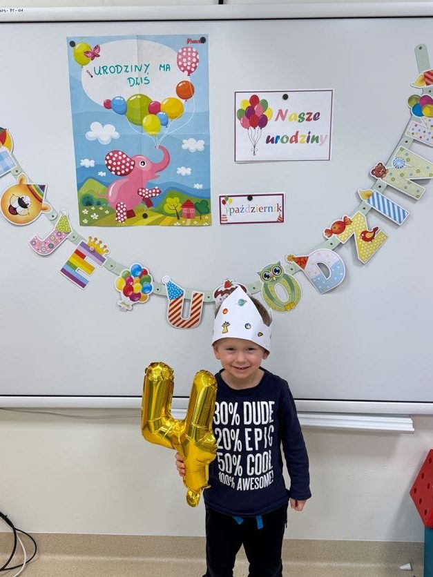 3 października w naszym przedszkolu świętowaliśmy 4. urodziny Mikołaja. To był wyjątkowy dzień pełen radości i uśmiechów. Dzieci z grupy z radością odśpiewały gromkie „Sto lat”, a Mikołaj poczęstował wszystkich pysznymi cukierkami. Atmosfera była pełna życzliwości, dobrej zabawy i ciepłych słów.