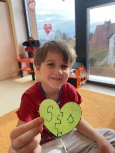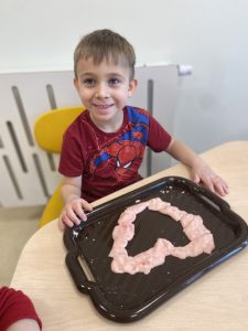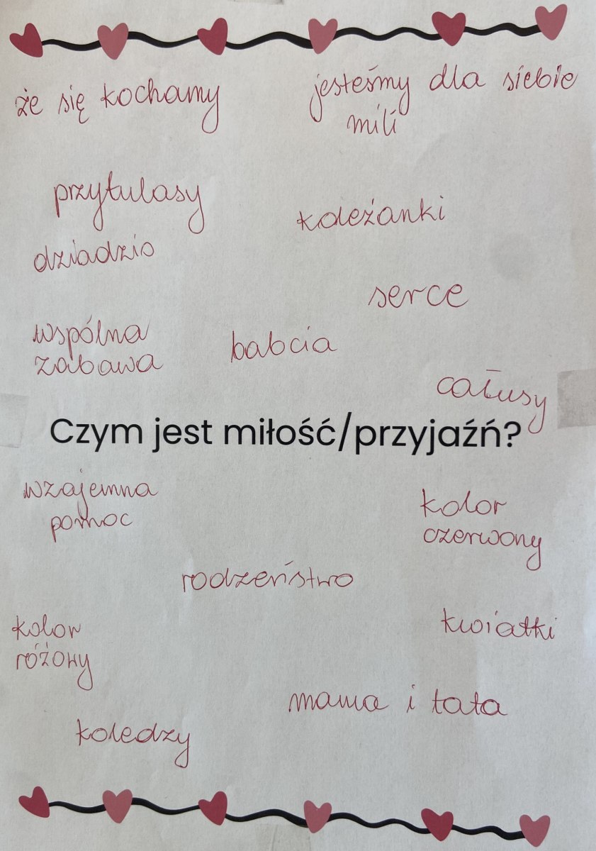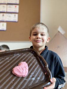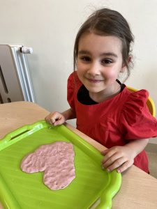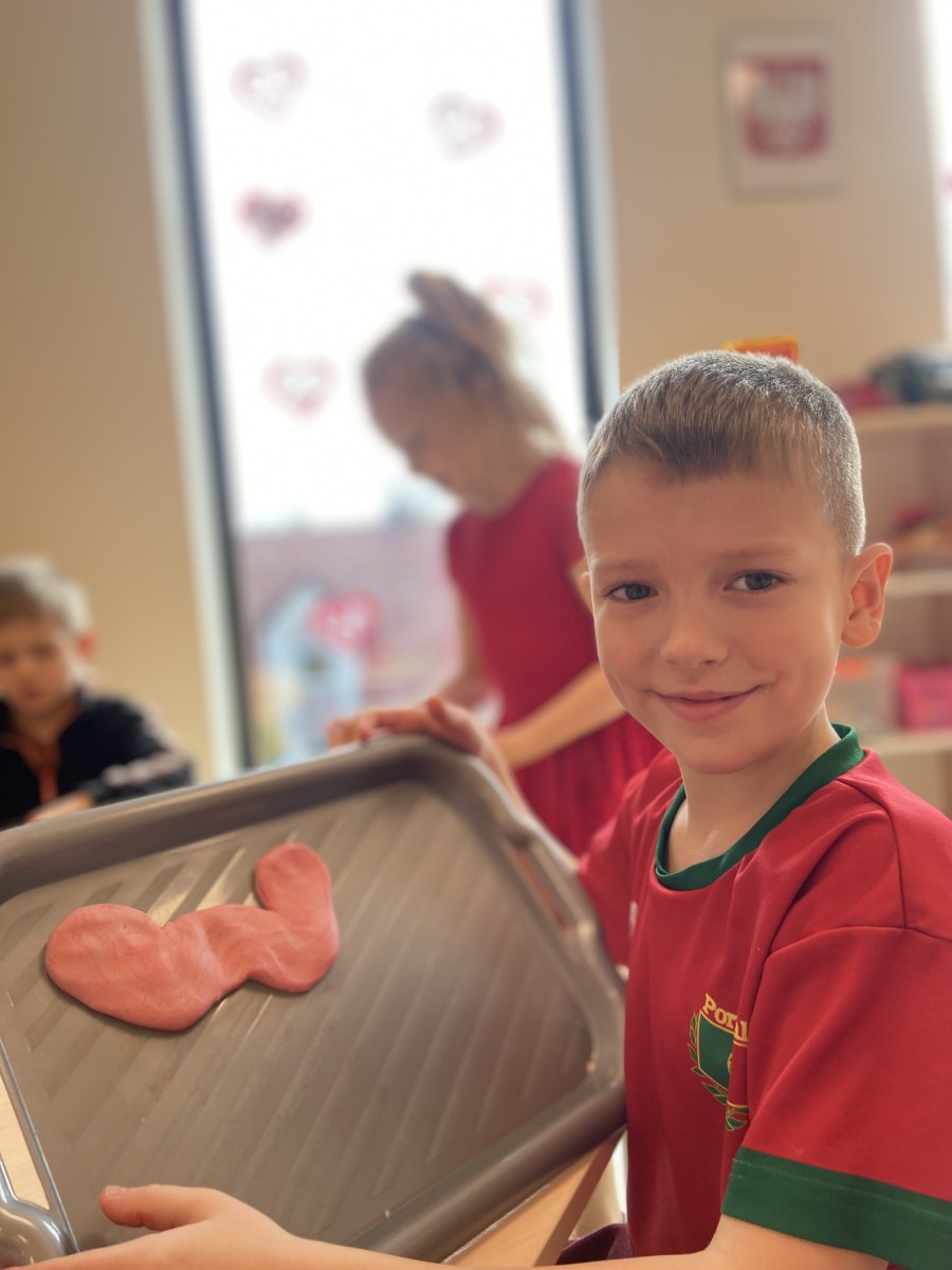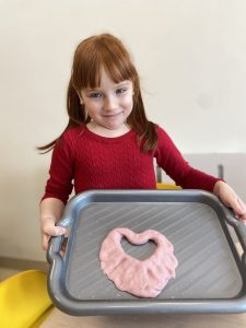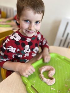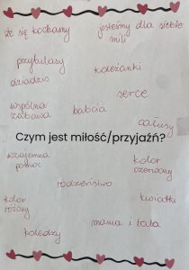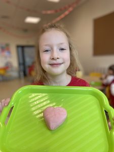 14 lutego świętowaliśmy w grupie Jeżyków Walentynki. Przedszkolaki w ten specjalny dzień odpowiedziały na pytanie czym według nich jest miłość i przyjaźń, utrwalały poznane dotychczas litery, rozwijały sprawność manualną podczas zabawy z walentynkową masą solną.