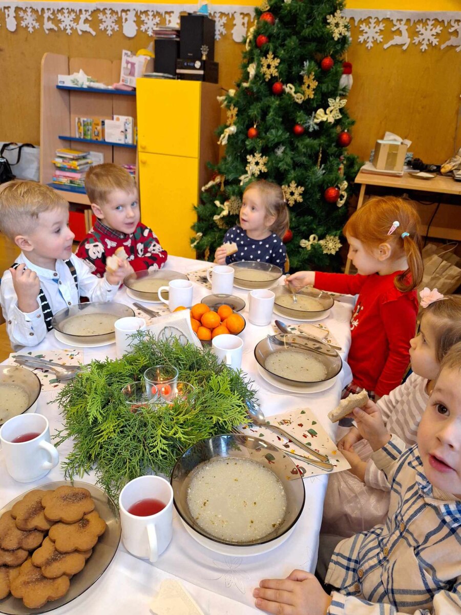 Czas oczekiwania na Boże Narodzenie zakończył się uroczystą wigilią, która odbyła się 22 grudnia. W tym dniu przedszkolaki wspólne kolędowały, dzieliły się opłatkiem, składały sobie życzenia oraz zjadły uroczysty wigilijny obiad.