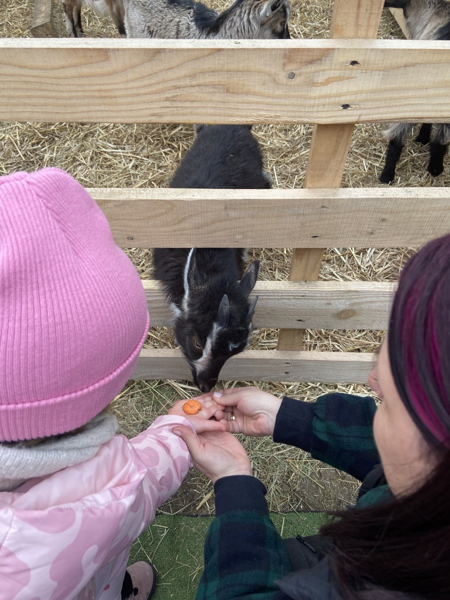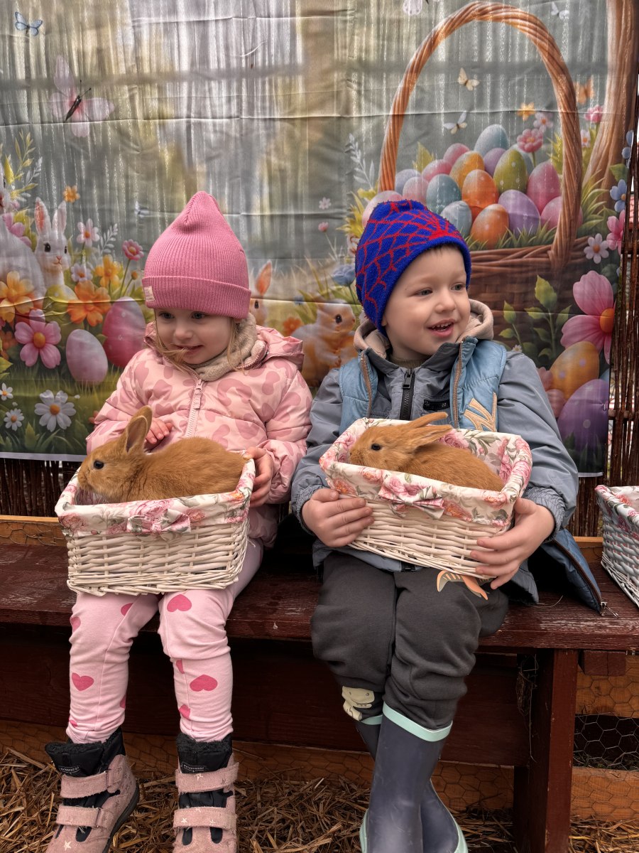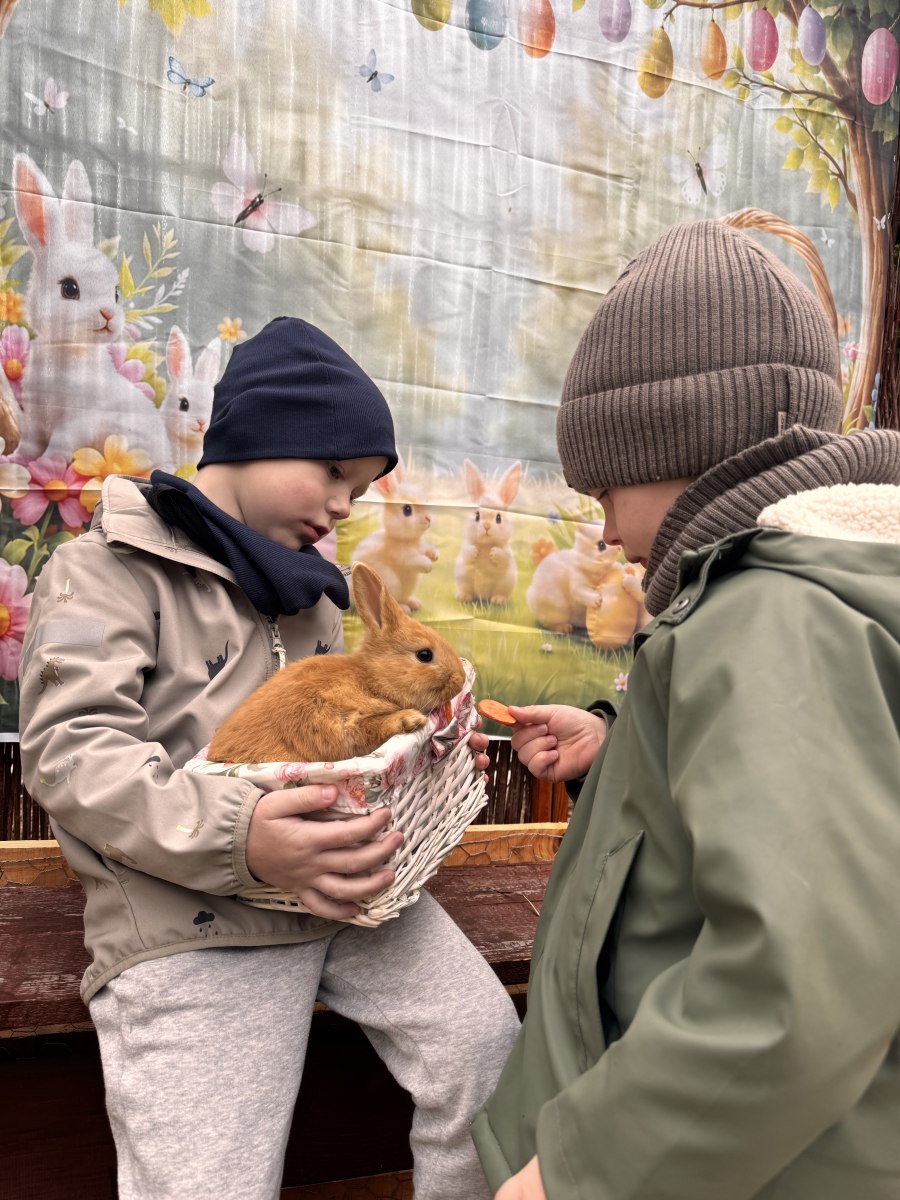 Dzieci miały również wspaniałą okazję zobaczyć z bliska wiejskie zwierzęta – z uśmiechem na twarzach głaskały i karmiły kozy, krowę oraz króliczki. To było dla nich niezwykle ciekawe i pełne emocji przeżycie!