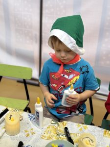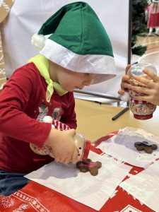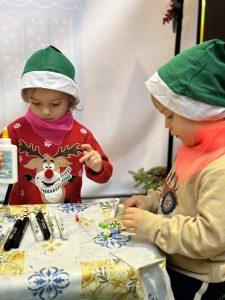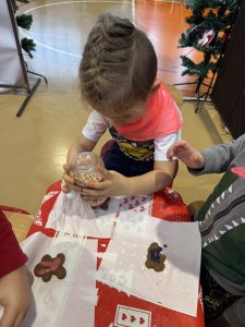 Już od pierwszych chwil dzieci miały ręce pełne pracy – z ogromnym zaangażowaniem wykonywały zawieszki w kształcie renifera, ozdabiały pierniki oraz tworzyły niepowtarzalne świąteczne ozdoby.