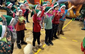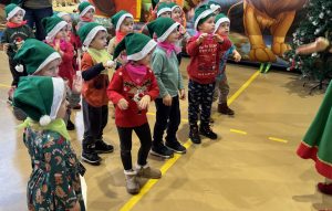 Spotkanie z Nim wywołało mnóstwo radości, uśmiechów i wzruszeń, a niektóre dzieci miały okazję zrobić sobie z Mikołajem pamiątkowe zdjęcie. Elfy przygotowały też dla naszych przedszkolaków świetną zabawę – wspólny, wesoły taniec oraz aktywności na dmuchańcach przyniosły mnóstwo śmiechu i energii.