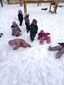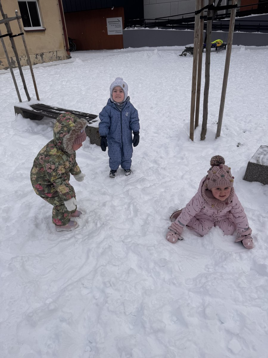 W piątek dzieci z grupy Żabki wybrały się na podwórko, aby skorzystać z pięknej zimowej pogody. Maluchy z ogromną radością lepiły bałwanki, robiły aniołki w śniegu, rzucały śnieżkami i obserwowały zimowe zabawy swoich kolegów.